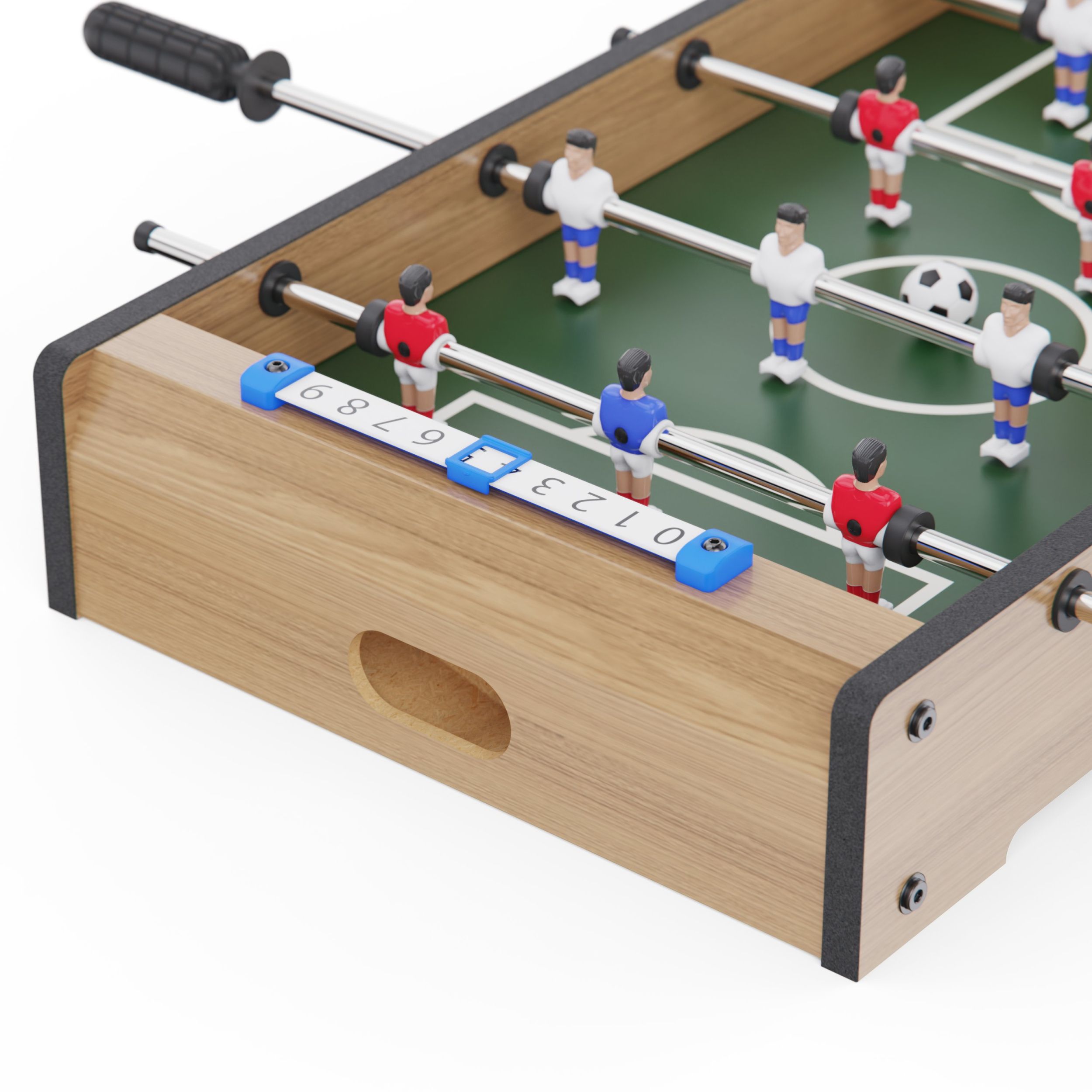 Размер игрового поля составляет 40 х 30 см, благодаря чему стол не занимает много места и легко размещается на любой поверхности — столе, тумбе или на полу. Такой компактный формат делает его идеальным вариантом настольного детского футбола — как для дома, так и для поездок или подарка.