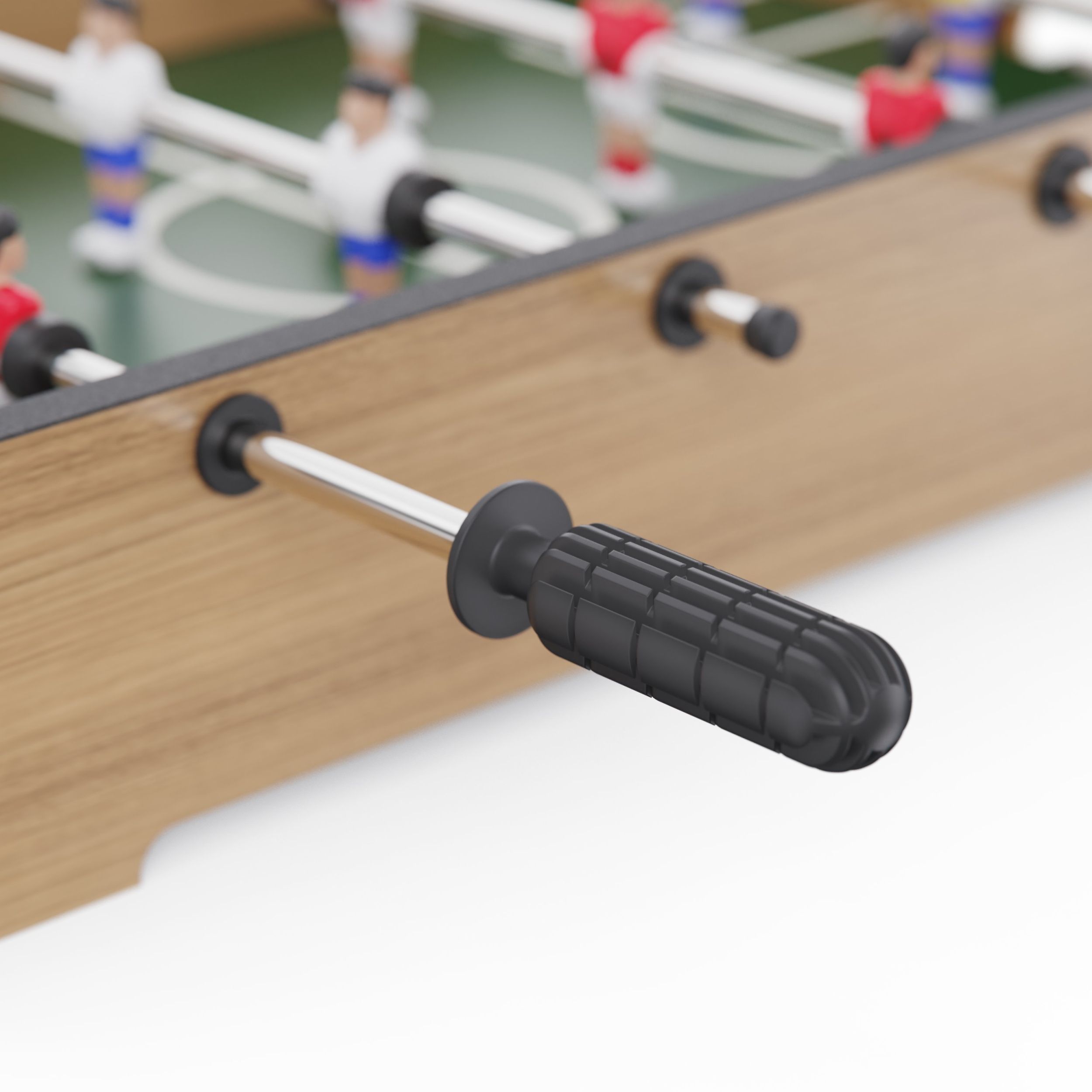 Игровая поверхность выполнена из МДФ с покрытием ПВХ, что обеспечивает стабильность конструкции и износостойкость. Толщина игрового поля — 3 мм, высота бортиков — 66 мм, а их толщина — 9 мм, что способствует хорошему контролю мяча и динамичной игре.
