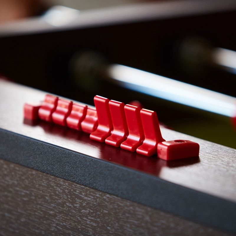 Модель «Эсквайр» изготовлена в размерах, сопоставимых с размерами профессиональных столов (поле 120х70 см.); но при этом кикер «Эсквайр Black» очень мобильный: его легко перенести или подвинуть, ведь его вес – 45 кг. Его также можно быстро разобрать, отсоединив опоры, и перевезти на заднем сидении легкового автомобиля. Окончания игровых штанг защищены заглушками, чтобы предотвратить травмы при игре. Рукоятки выполнены из материала, препятствующего скольжению руки.