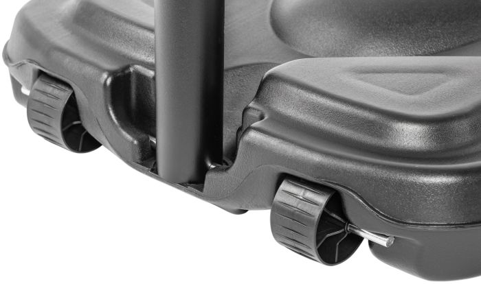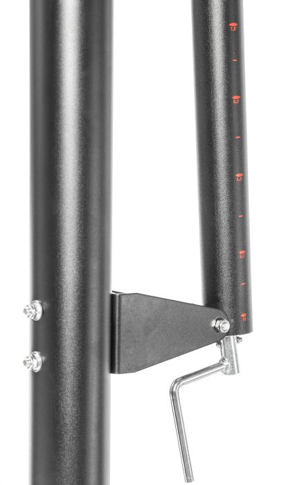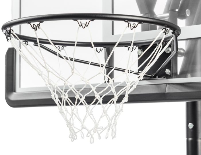 Щит регулируется по высоте в диапазоне от 230 до 305 см по кольцу. Поворотный механизм позволяет осуществлять регулировку высоты стойки даже детям. В среднем положении вынос щита составляет 45 см.