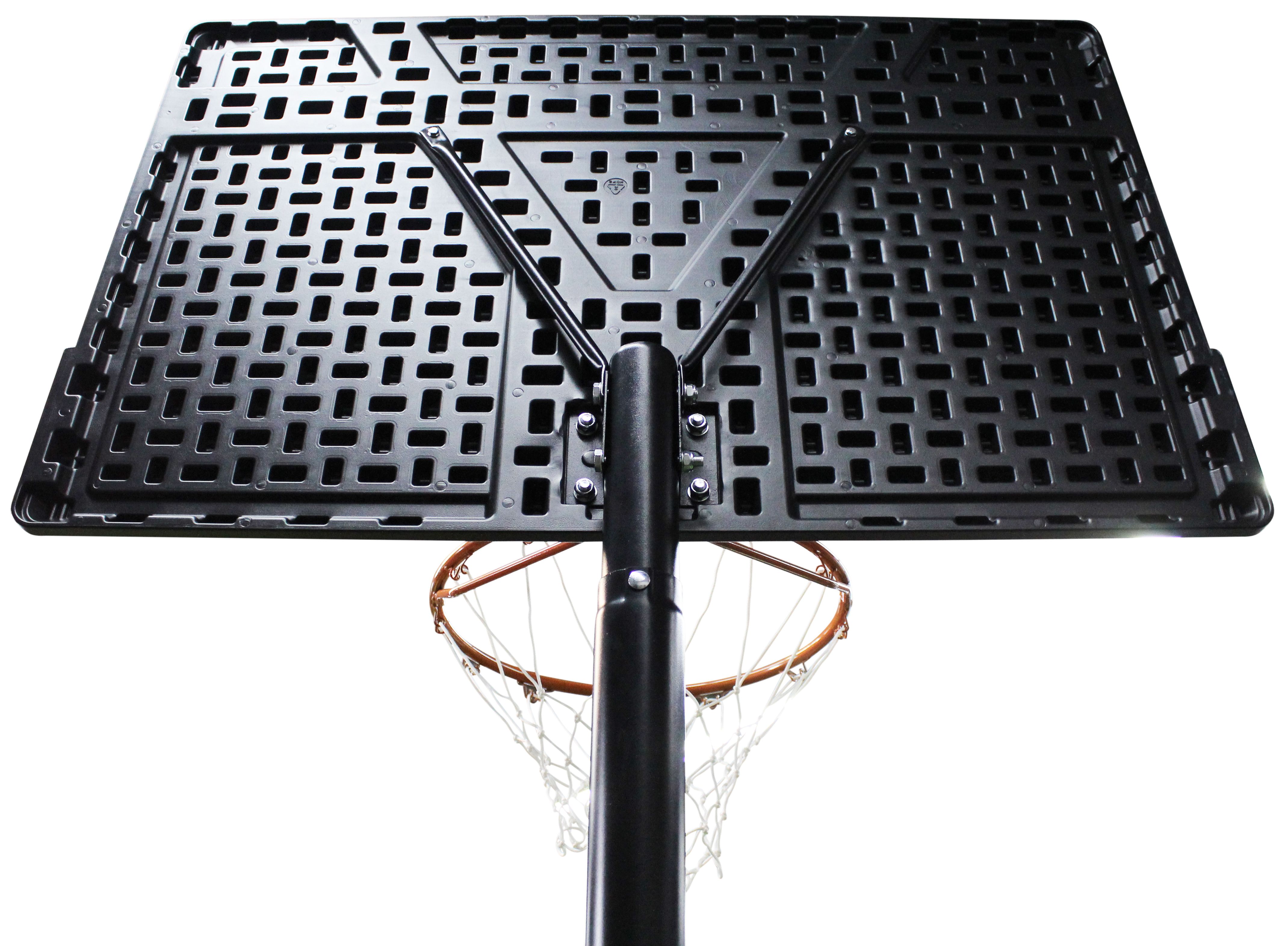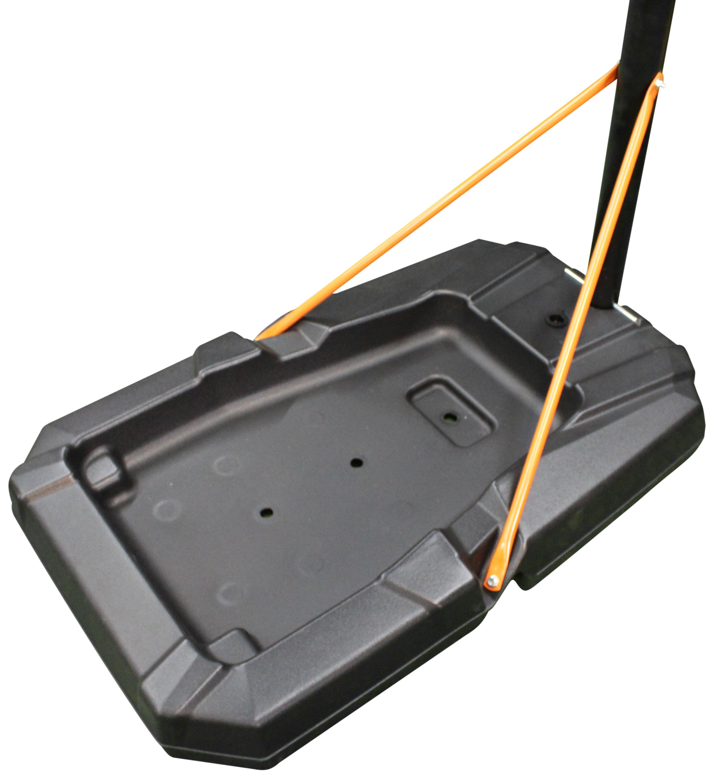 В основание стойки необходимо залить воду или засыпать песок. Для перемещения стойки по площадке в основании предусмотрены ролики.