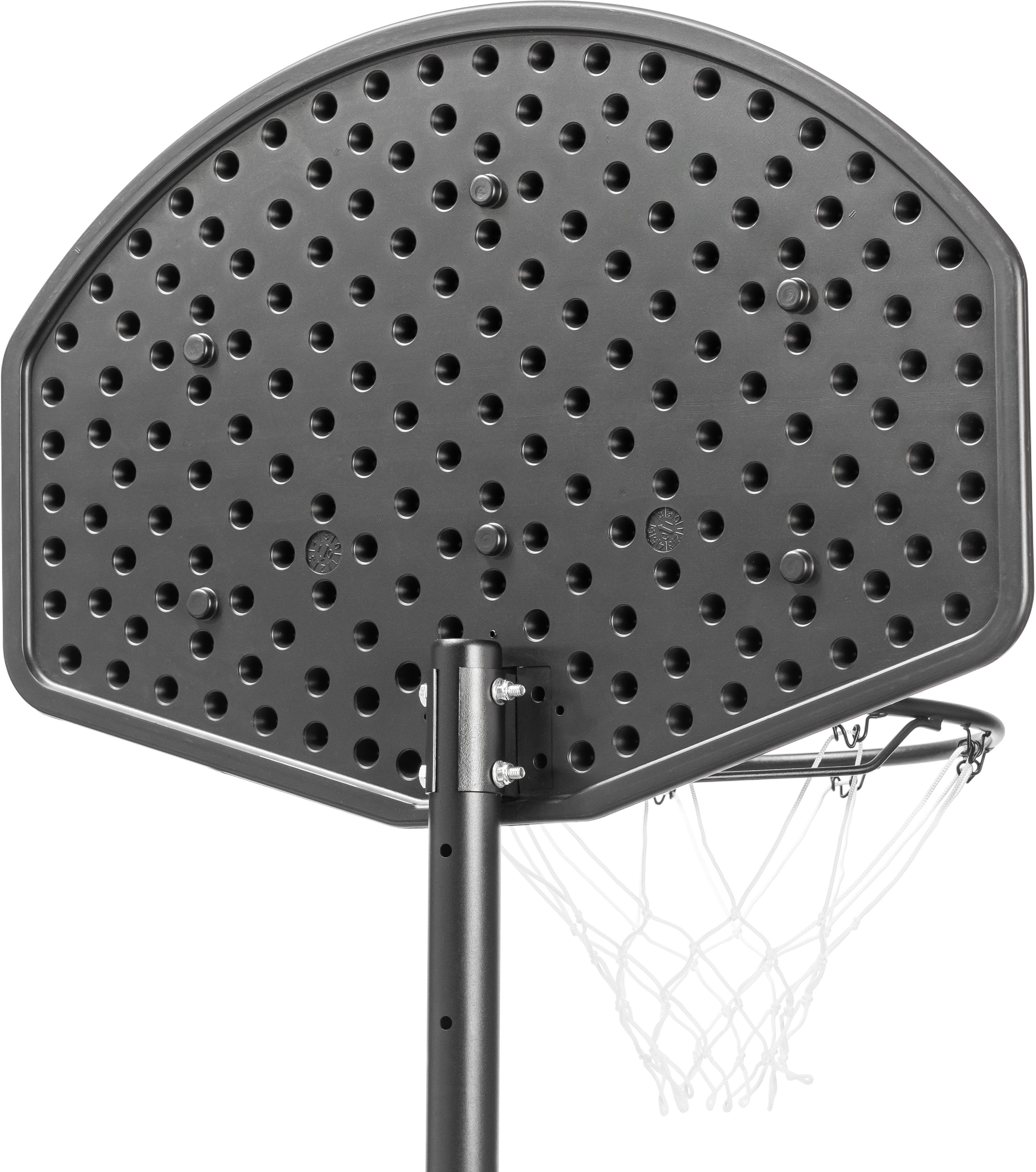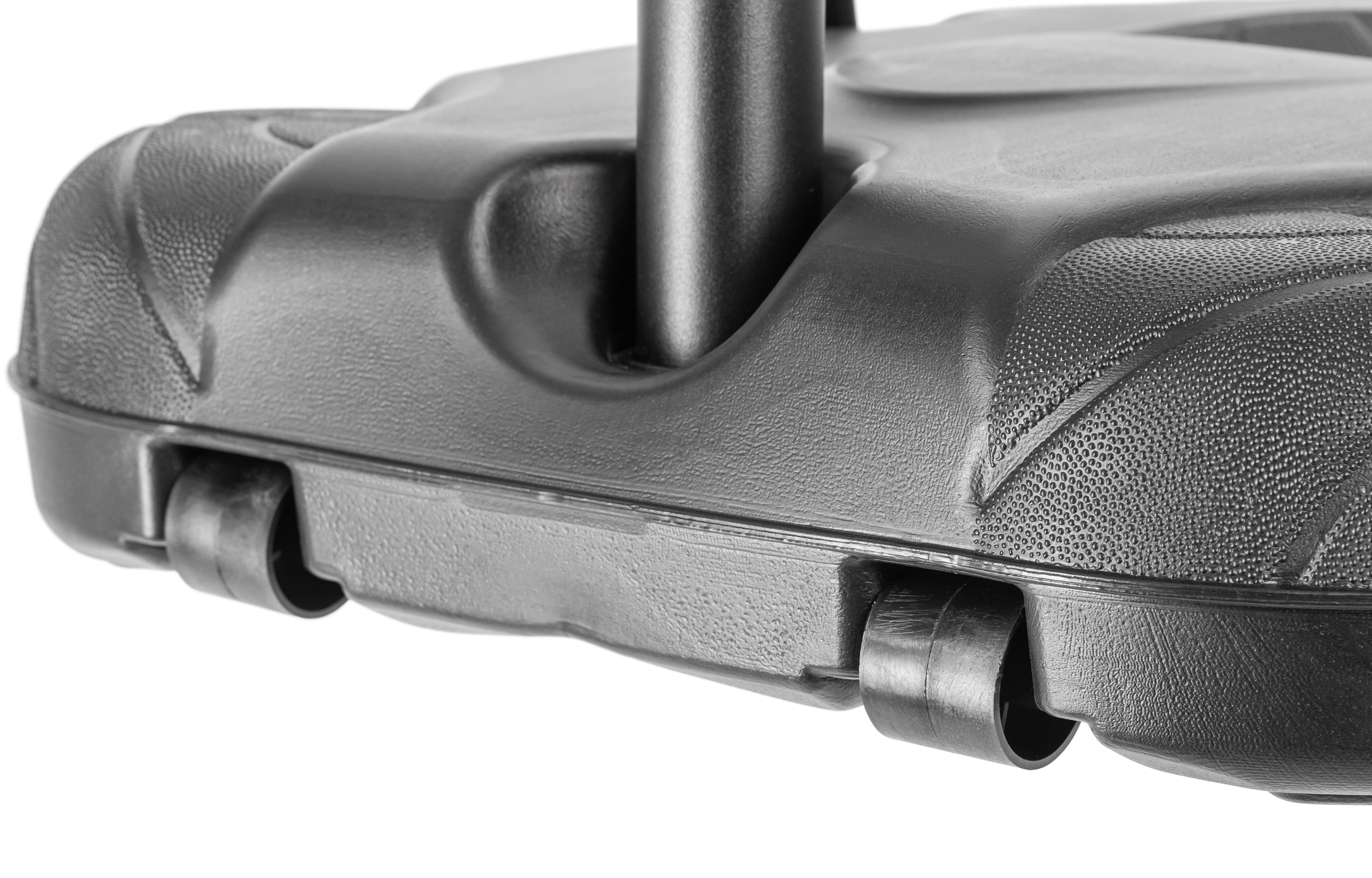 В основание стойки необходимо залить воду или засыпать песок. Для перемещения стойки по площадке в основании предусмотрены ролики.