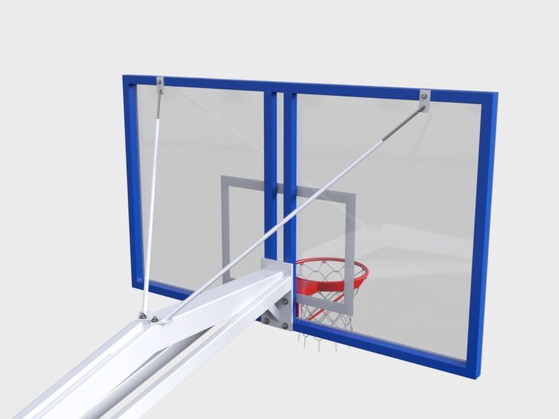 Оснащена мягкой защитой спереди и по бокам и защитой баскетбольного щита.