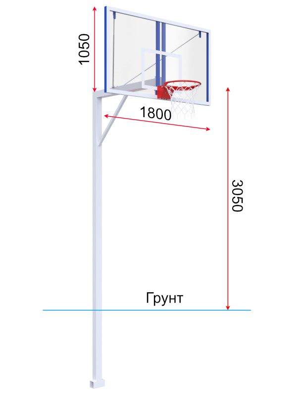 Щит баскетбольный профессиональный имеет размер 1800х1050 мм (ШхВ).