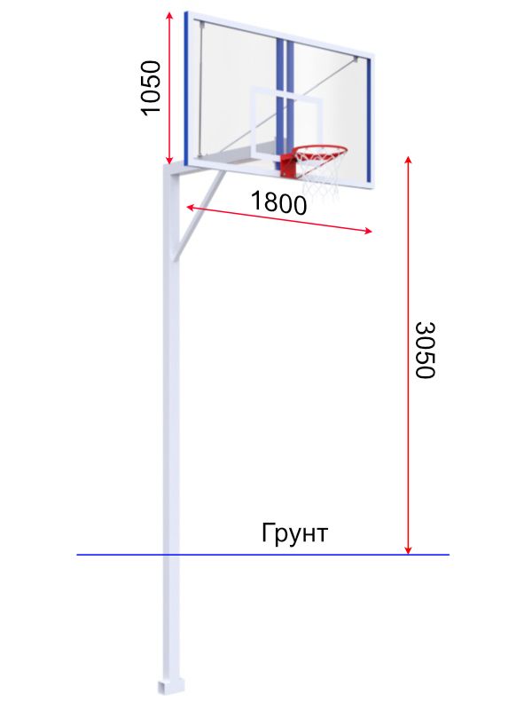 Щит баскетбольный профессиональный имеет размер 1800х1050 мм (ШхВ).