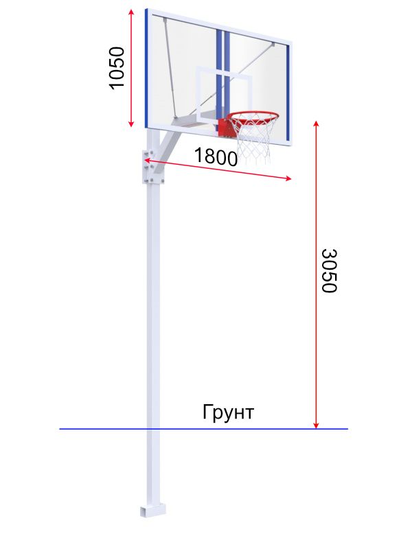 Щит баскетбольный профессиональный предназначен для крепления к баскетбольной стойке и имеет размер 1800х1050 мм (ШхВ).