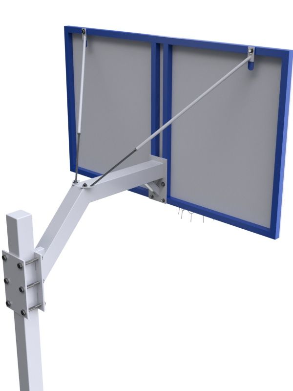 Стойка представляет собой разборную конструкцию, состоящую из вертикальной стойки, выполненной из профильной трубы 100х100х2,5 мм, передвижной консоли с рамой для крепления щита.
