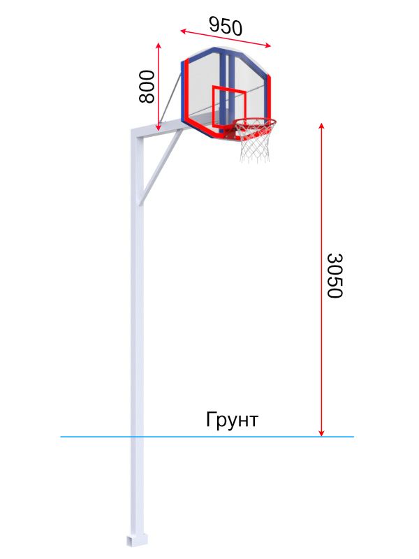 Щит стритбольный имеет размер 960х800 мм (ШхВ). Изготовлен из оргстекла толщиной 6 мм на металлической раме (профиль 40х20 мм).