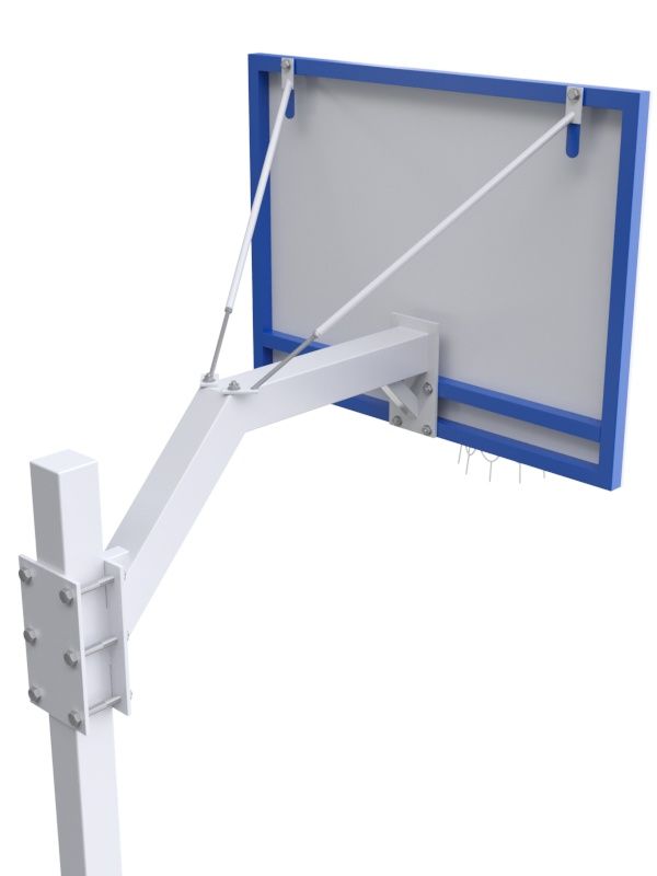 Стойка представляет собой разборную конструкцию, состоящую из вертикальной стойки, выполненной из профильной трубы 100х100х2,5 мм, передвижной консоли с рамой для крепления щита.