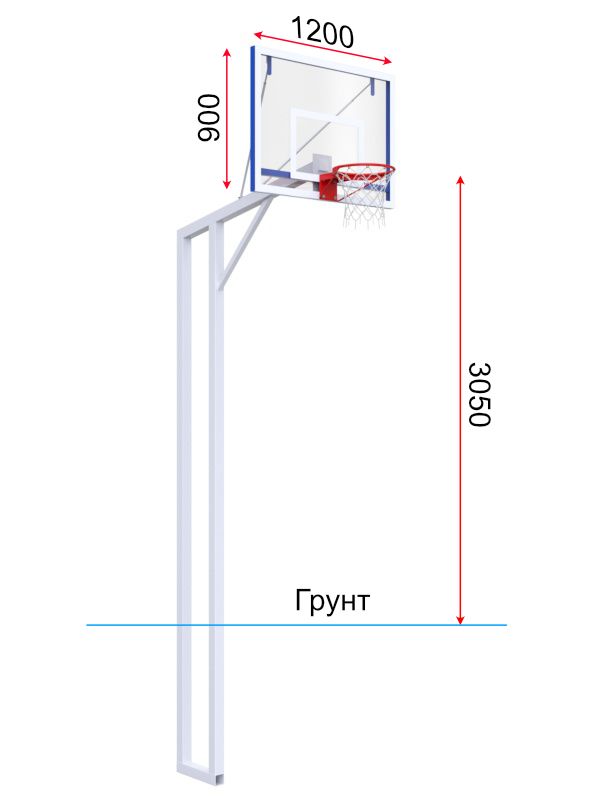 Вынос стойки на выбор от 1200 до 1600 мм. Высота от уровня грунта до кромки кольца 3050 мм.