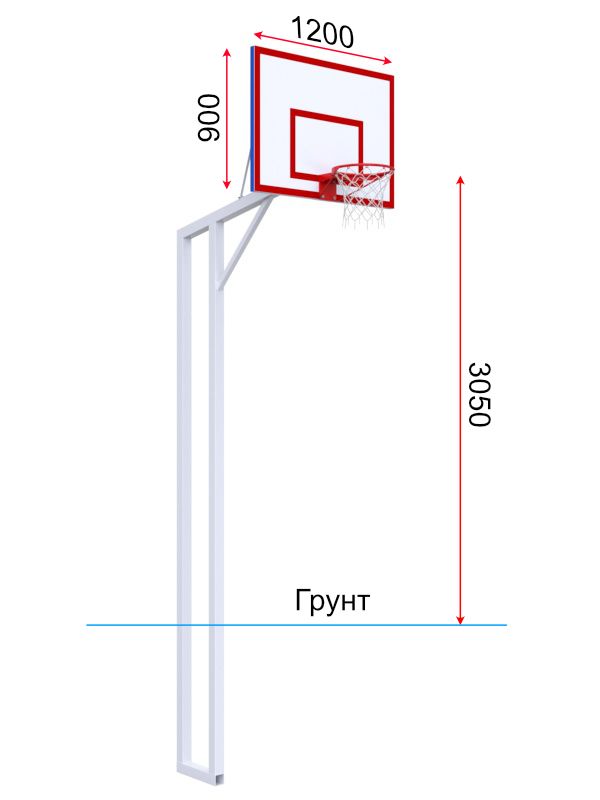 Вынос стойки 1200 мм. Высота от уровня грунта до кромки кольца 3050 мм.