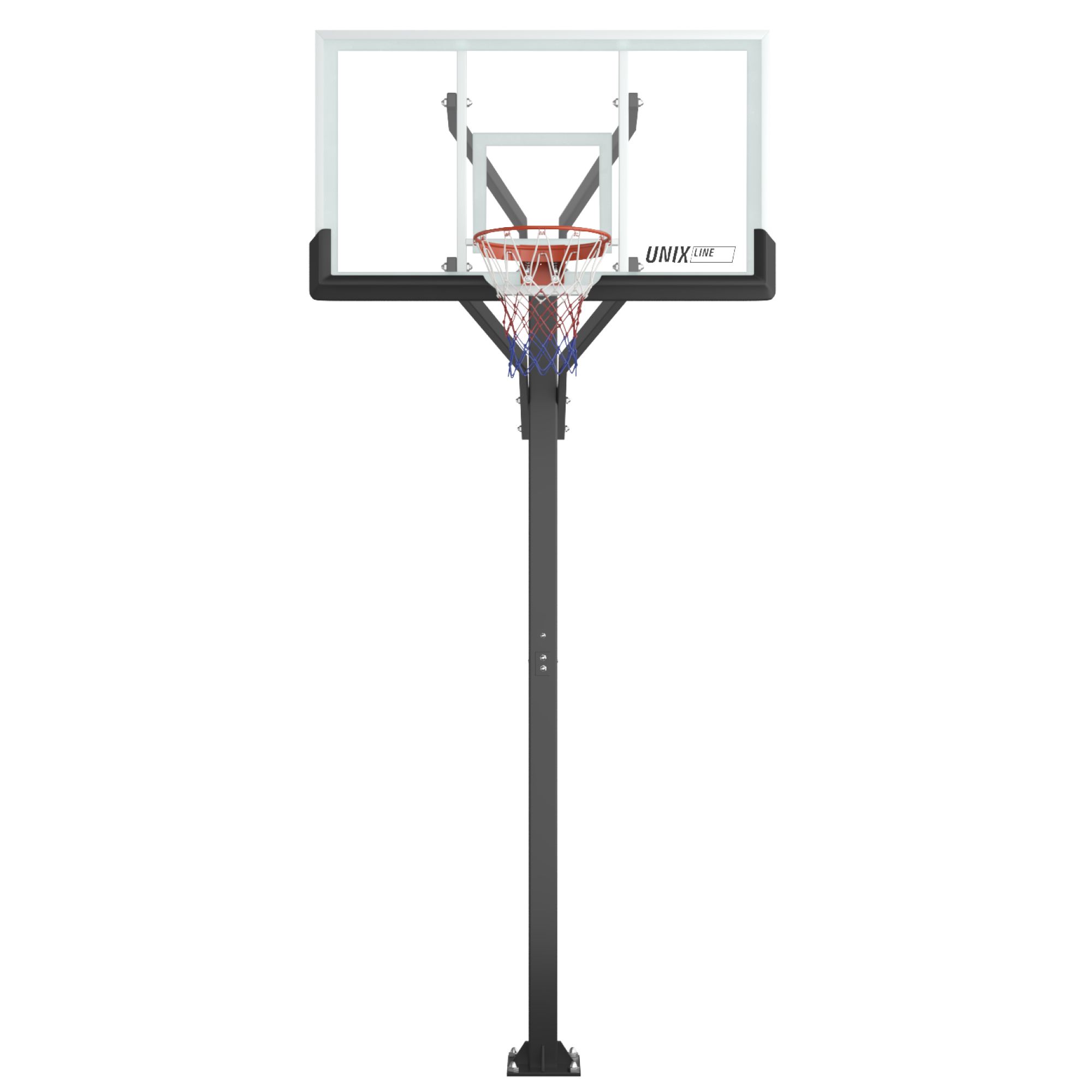 Такие высококачественные материалы уличной баскетбольной стойки 305 см как всепогодная нейлоновая сетка, щит из поликарбоната толщиной 4 мм, стальные трубы стойки гарантируют долгий срок службы, устойчивость к погодным условиям и главное - безопасность. Рама стальная с полиэтиленовой накладкой.