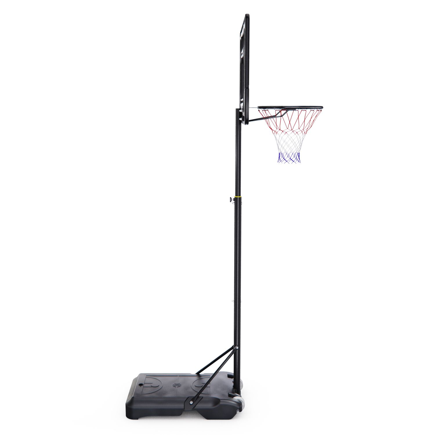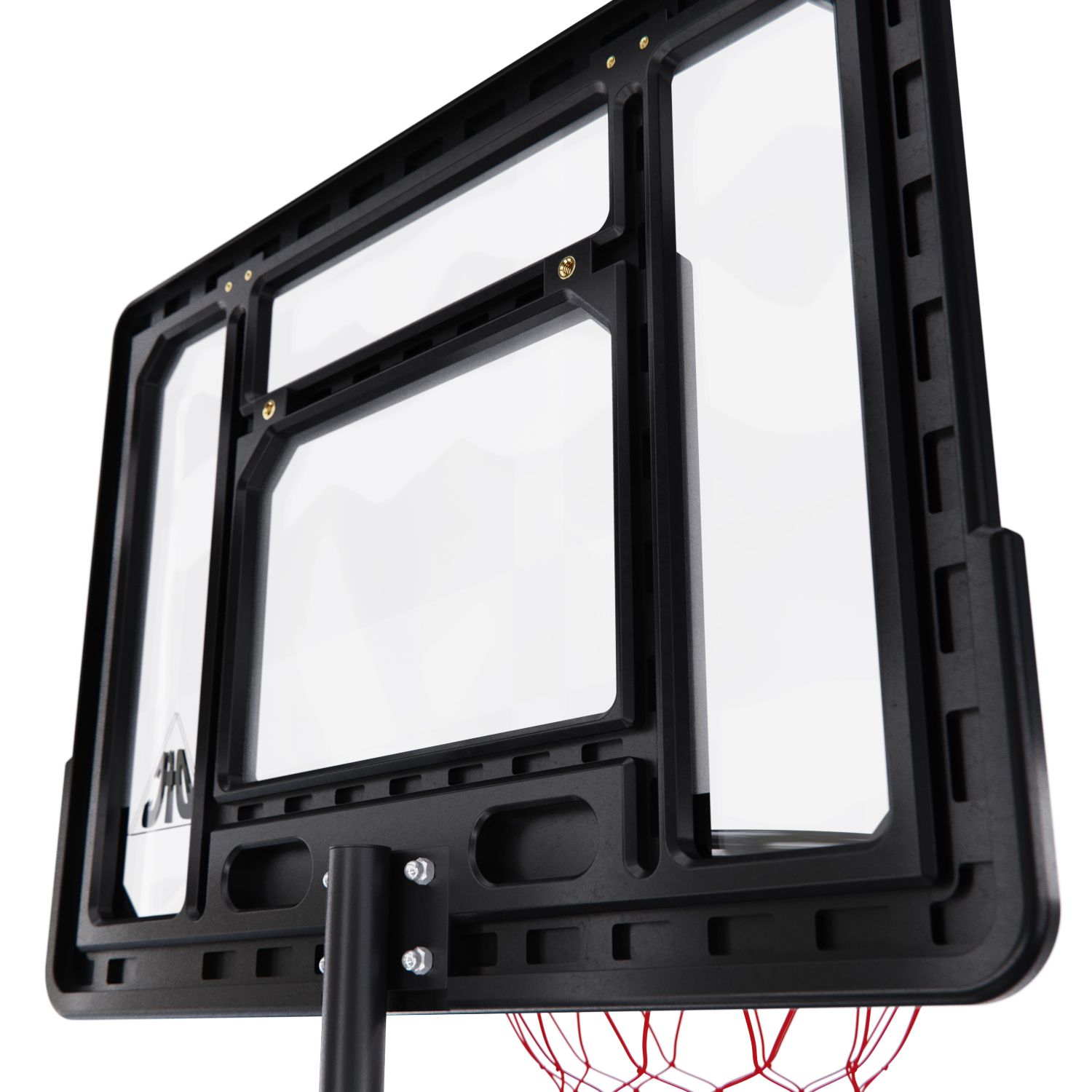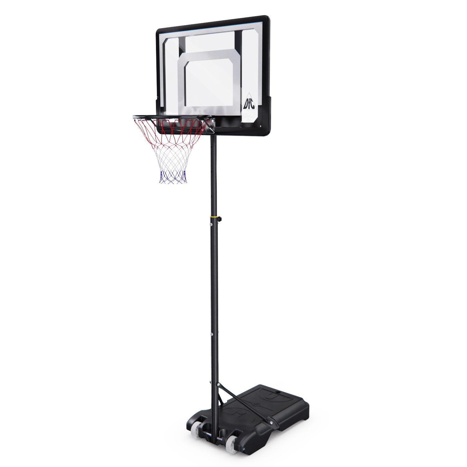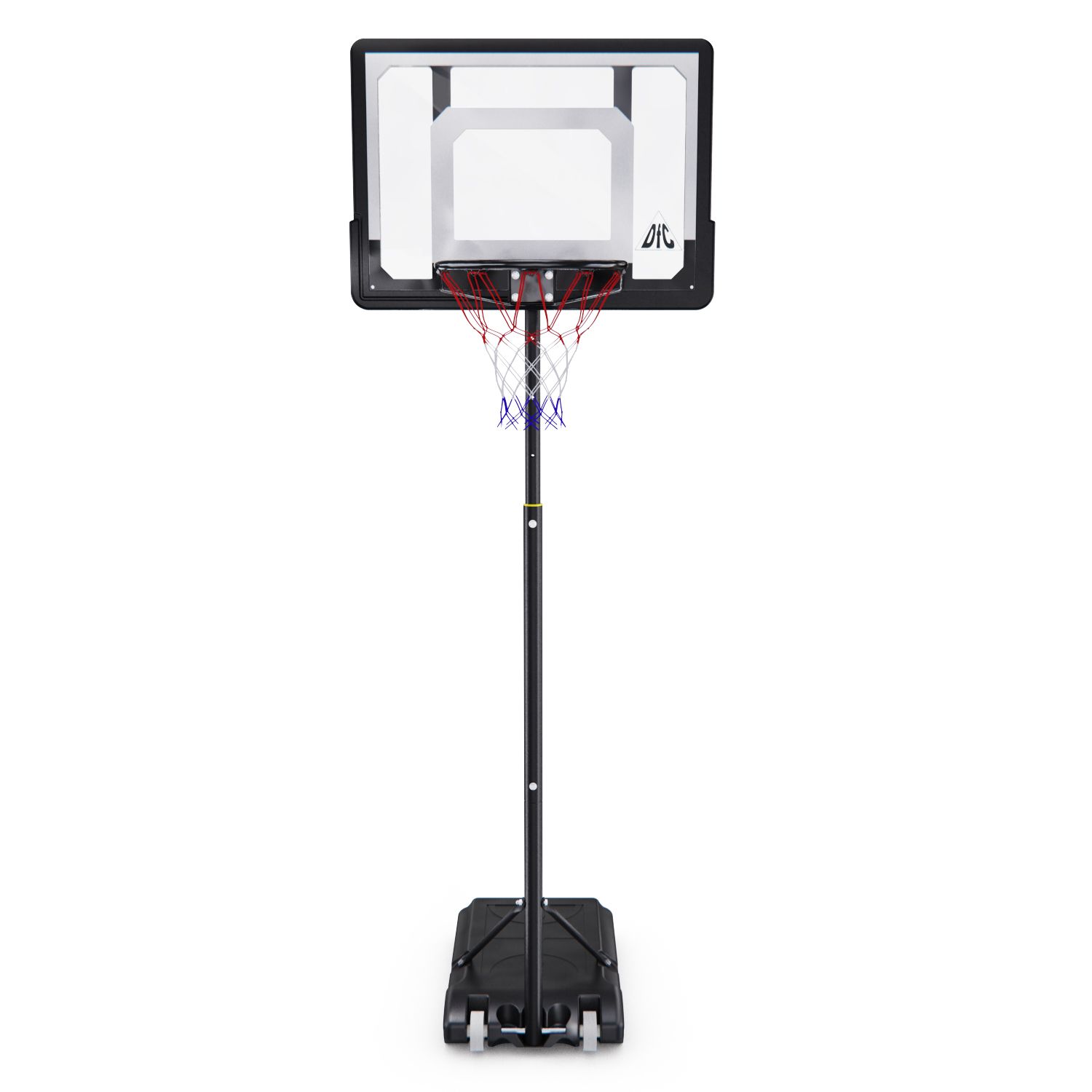 Мобильная баскетбольная стойка DFC K451 — это отличный выбор для любителей баскетбола. Регулировка по высоте осуществляется телескопическим способом в диапазоне от 165 до 215 см, что позволяет использовать её как детям, так и взрослым. Характеристики железной трубы: верхняя труба диаметром 38х1,0 мм с перфорированными отверстиями и приваренными железными листами сверху; средняя трубка диаметром 42х1,0 мм, гайка приварена; нижняя трубка диаметром 42х1,0 мм; сплющенная трубка 19х0,8 мм, сплющенная с обоих концов. Стойка белого цвета, имеет чёрную рамку корзины диаметром 16х1,0 мм, размер которой составляет 85 x 58 см. Размер кольца составляет 43 см.