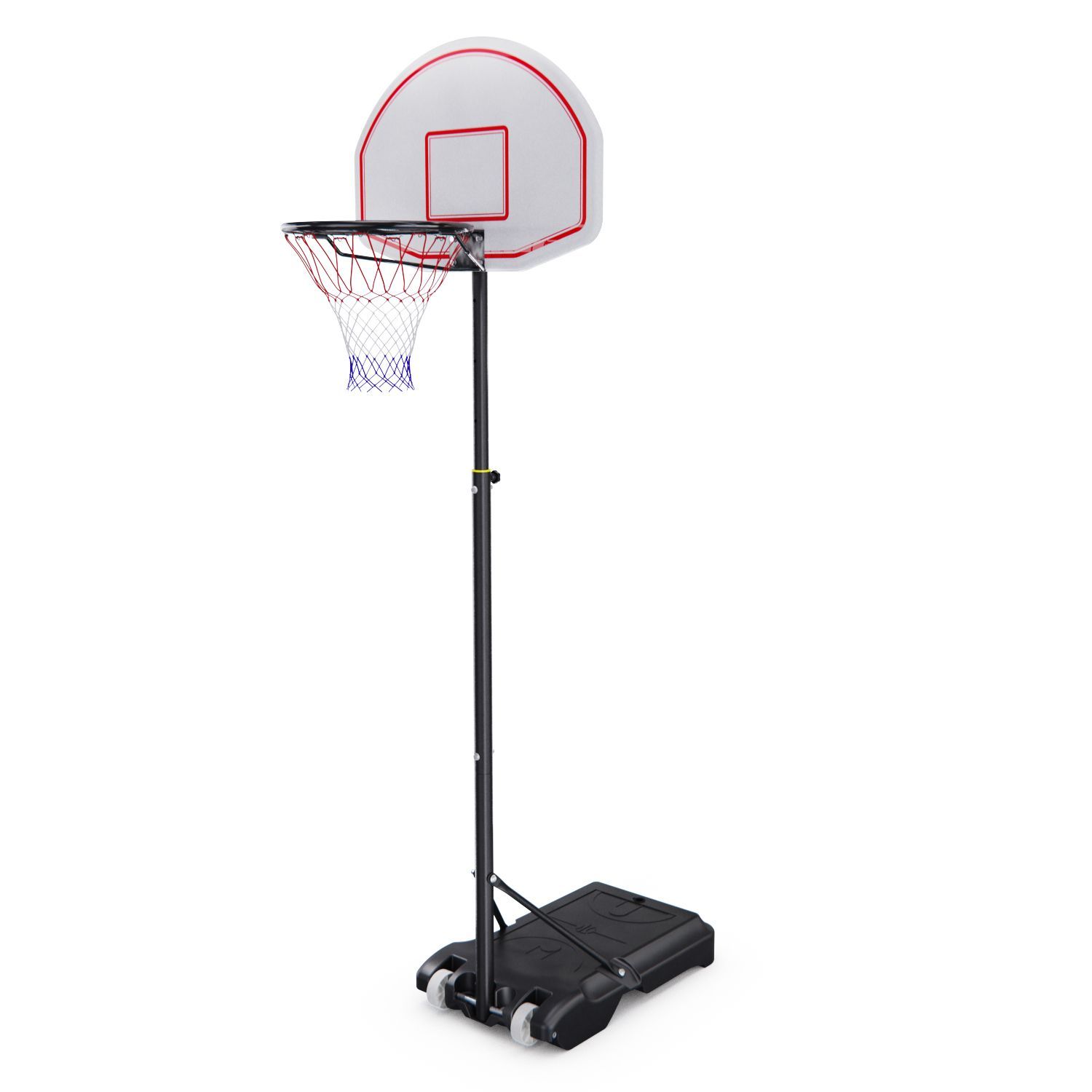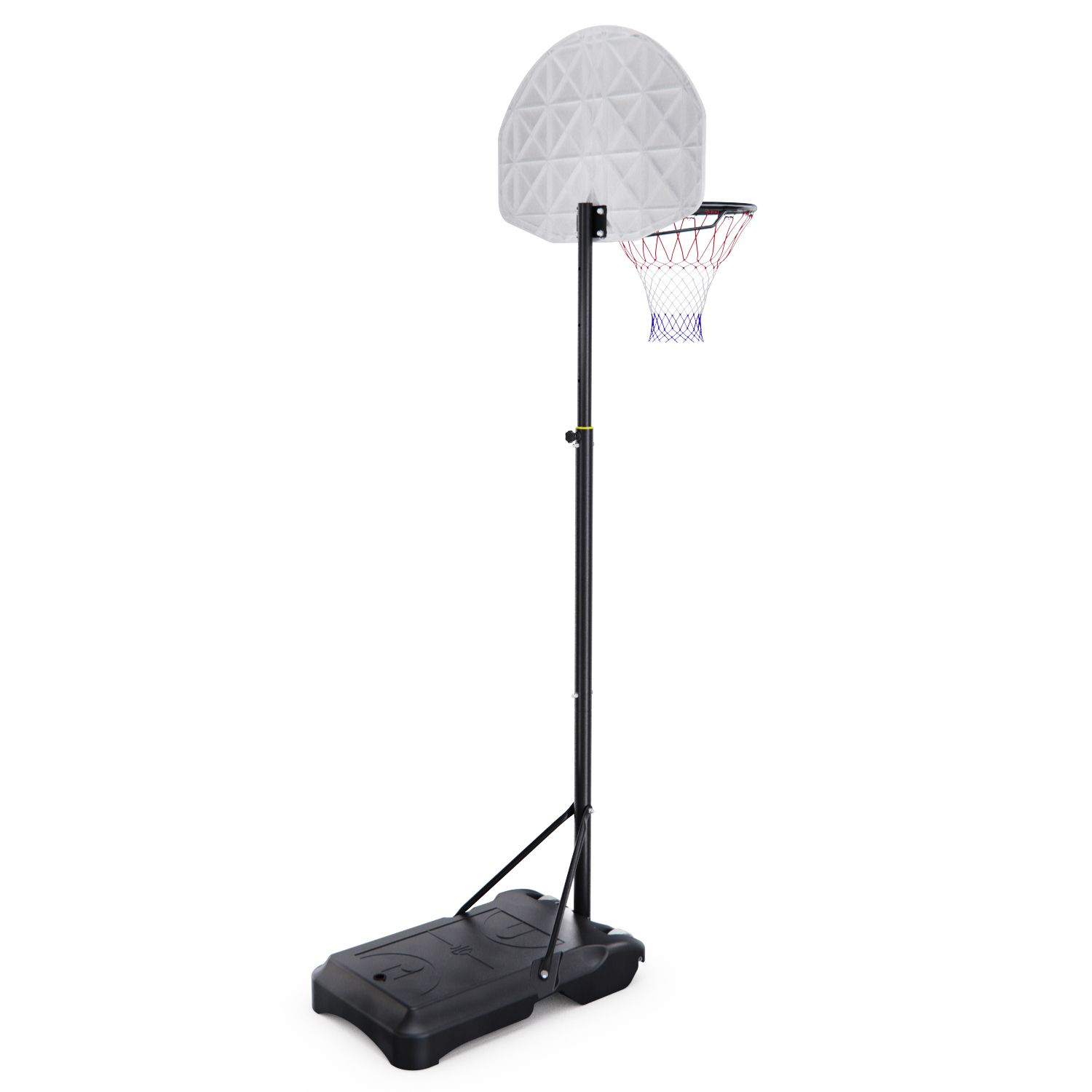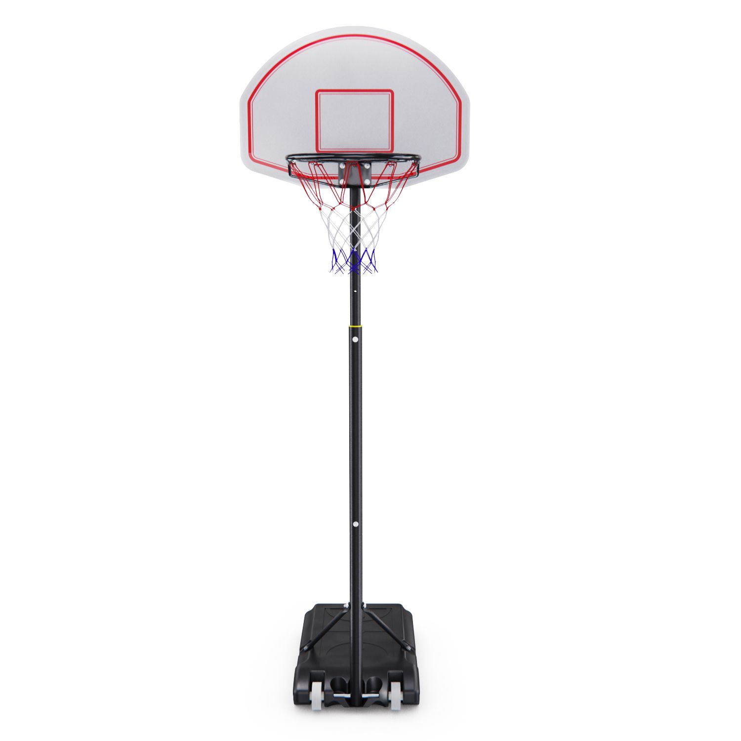Мобильная баскетбольная стойка DFC K450 — это отличный выбор для любителей баскетбола. Регулировка по высоте осуществляется телескопическим способом в диапазоне от 165 до 215 см, что позволяет использовать её как детям, так и взрослым. Характеристики железной трубы: верхняя труба диаметром 38х1,2 мм с перфорированными отверстиями и приваренными железными листами сверху; средняя трубка диаметром 42х1,0 мм, гайка приварена; нижняя трубка диаметром 42х1,0 мм; сплющенная трубка 19х0,8 мм, сплющенная с обоих концов. Стойка белого цвета, имеет чёрную рамку корзины диаметром 16 ммх1,0 мм, размер которой составляет 70 x 45 см. Размер кольца составляет 43 см.