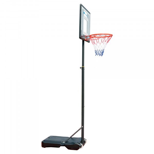 Имеет устойчивую конструкцию и усиленное металлическое кольцо для активной игры. Емкость основания заполняется 35 кг воды или песка. Встроенные в основание транспортировочные колеса облегчают транспортировку.