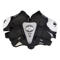 Скрытые наплечные чашки. Дополнительные пластиковые вставки для защиты ключиц, груди и спины. Регулируемый объем груди и бицепсов.