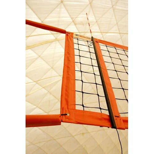 Верхние и нижние ограничительные ленты шириной 8 см, а также боковые ленты шириной 8 см изготовлены из ПЭ (полиэстера) оранжевого цвета, полотно сетки из специального светостабилизированного полипропилена черного цвета (толщина нити 3 мм, ячейка 10х10 см). Применение данных материалов позволяет использовать сетку на открытых площадках при игре в агрессивных погодных условиях (яркий прямой свет, дождь, высокая влажность) без угрозы растяжения и провисания полотна сетки, и разрушения структуры материала. Для равномерного натяжения сетки в боковые ленты вставлены фибергласовые стержни и предусмотрены 2 полипропиленовых шнура с каждой стороны.