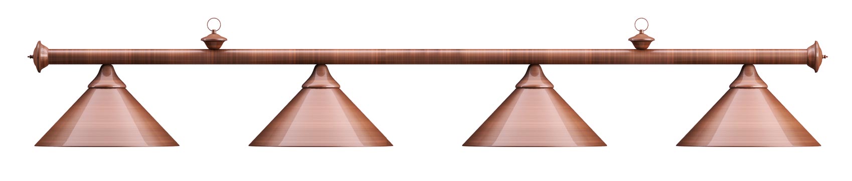 Изящная лампа классического дизайна органично впишется в любой интерьер. Устойчивые к механическим повреждениям металлические плафоны на металлической штанге обеспечивают не только качественное освещение игрового поля, но и создадут уютную атмосферу в бильярдном клубе или кабинете. Комплектуется цепочками и чашками для крепления к потолку. Предназначена для равномерного освещения игрового поля 8 - 9 футовых столов.
