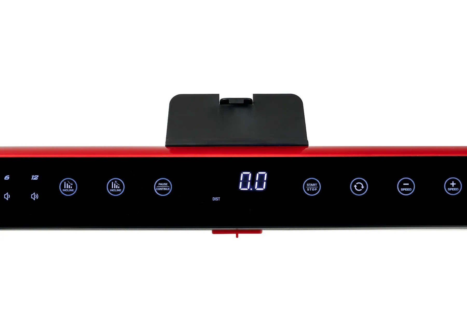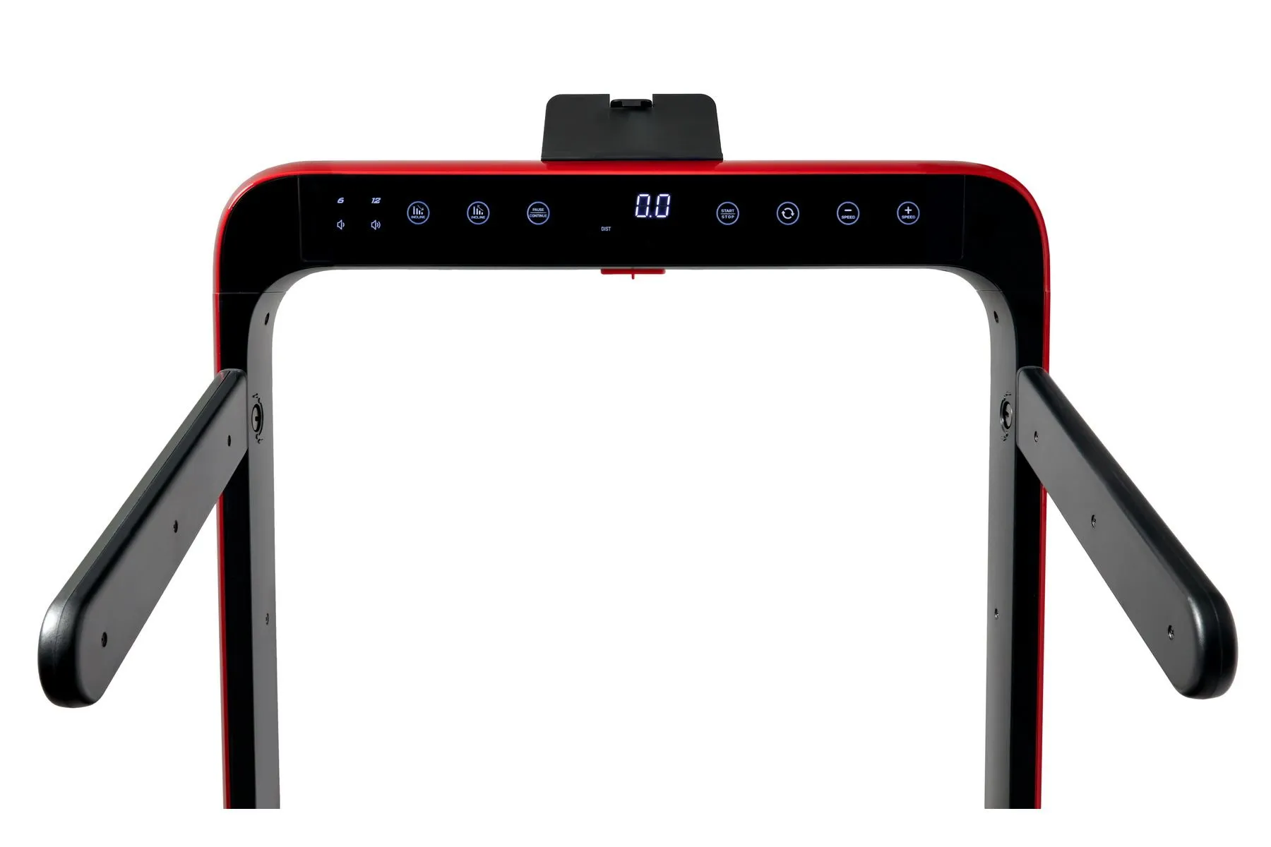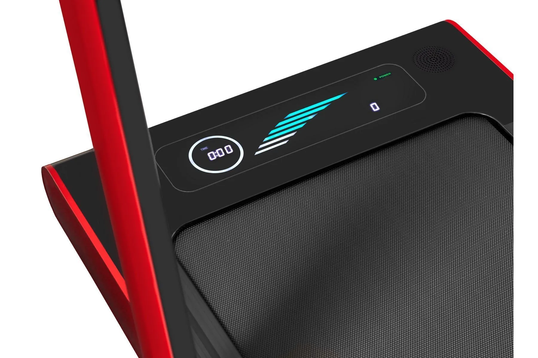 Во-вторых, размер бегового полотна. При всей своей компактности дорожка обладает действительно большим и комфортным полотном, рассчитанным на тренировку пользователей любого уровня, включая профессиональных спортсменов. 50 см в ширину и 133 см в длину – это очень хороший показатель для беговой дорожки классической формы, где практически нет ограничений в размерах, а для компактных дорожек такие размеры близки к максимуму возможного.