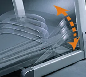 К числу дополнительных опций относятся жироанализатор, кнопки быстрой регулировки на поручнях и дублирующие датчики пульса. Гидравлическая система складывания easyFOLD™ существенно облегчает складывание дорожки, а при раскладывании обеспечивает медленное опускание полотна в последней фазе, гарантируя легкость и безопасность.