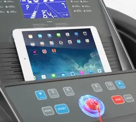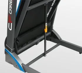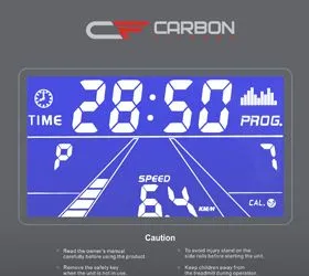 Тренировочные показатели выводятся на многофункциональный голубой дисплей высокой контрастности размером 4.9 дюйма (12.5 см.). В программный пакет входят 12 предустановленных программ и самостоятельно регулируемый ручной режим. Сенсорные датчики пульса расположены на поручнях тренажера. Там же находятся и "быстрые кнопки" доступа к изменению скорости и начала/остановки тренировки. За удобство складывания отвечает двухфазная гидравлическая система Easy Drop™ - она существенно облегчает складывание дорожки, а при раскладывании обеспечивает медленное опускание полотна в последней фазе, гарантируя легкость и безопасность. Перемещение тренажера происходит за счет 2-ух транспортировочных роликов.