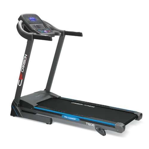 CARBON FITNESS T606 (также как и как версия c электрическим наклоном T656) является одной из самых сбалансированных дорожек по соотношению "цена-функционал". Тренажер ориентирован на удобную и эффективную тренировку самого широкого круга пользователей. Усиленная рама и надежный двигатель американской компании LEESON мощностью 2.0 л.с. рассчитаны на максимальный вес пользователя 130 кг. Скоростной режим находится в диапазоне от 0.8 до 14 км./ч., а угол наклона регулируется механическим путем в 3-ех положениях. Беговое полотно размером 125*42 см. является разумным оптимумом для комфортной и безопасной тренировки подавляющего большинства пользователей. Особая составляющая комфорта CARBON FITNESS T606 - великолепная амортизационная платформа, состоящая из 2-ух демпфирующих суперподушек Pro-Cushion™, 4-ех цилиндрических эластомеров VCS (Variable Cushion System™) профессионального уровня и 8-ми стабилизирующих эластомерных блоков Guard-Rail™. Нюанс такой настройки амортизации состоит в том, что в режиме бега пятка попадает в так называемую "мягкую зону", которая постепенно ужесточается по мере продвижения стопы по площади бегового полотна. Это создает не только идеальные условия для эффективной, комфортной, да и вообще приближенной к реальности тренировке, но и избавляет тренажер от "эффекта прыгучести" на высоких скоростях.
