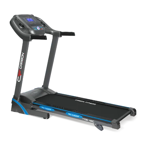 CARBON FITNESS T706 HRC имеет ряд дополнительных функций, облегчающих использование тренажера. "Быстрые кнопки" доступа к изменению скорости или угла наклона помогут оперативно управлять указанными параметрами с рукояток дорожки. За удобство складывания отвечает двухфазная гидравлическая система Easy Drop™ - она существенно облегчает складывание тренажера, а при раскладывании обеспечивает медленное опускание полотна в последней фазе, гарантируя легкость и безопасность. Перемещение дорожки происходит за счет 2-ух транспортировочных роликов.