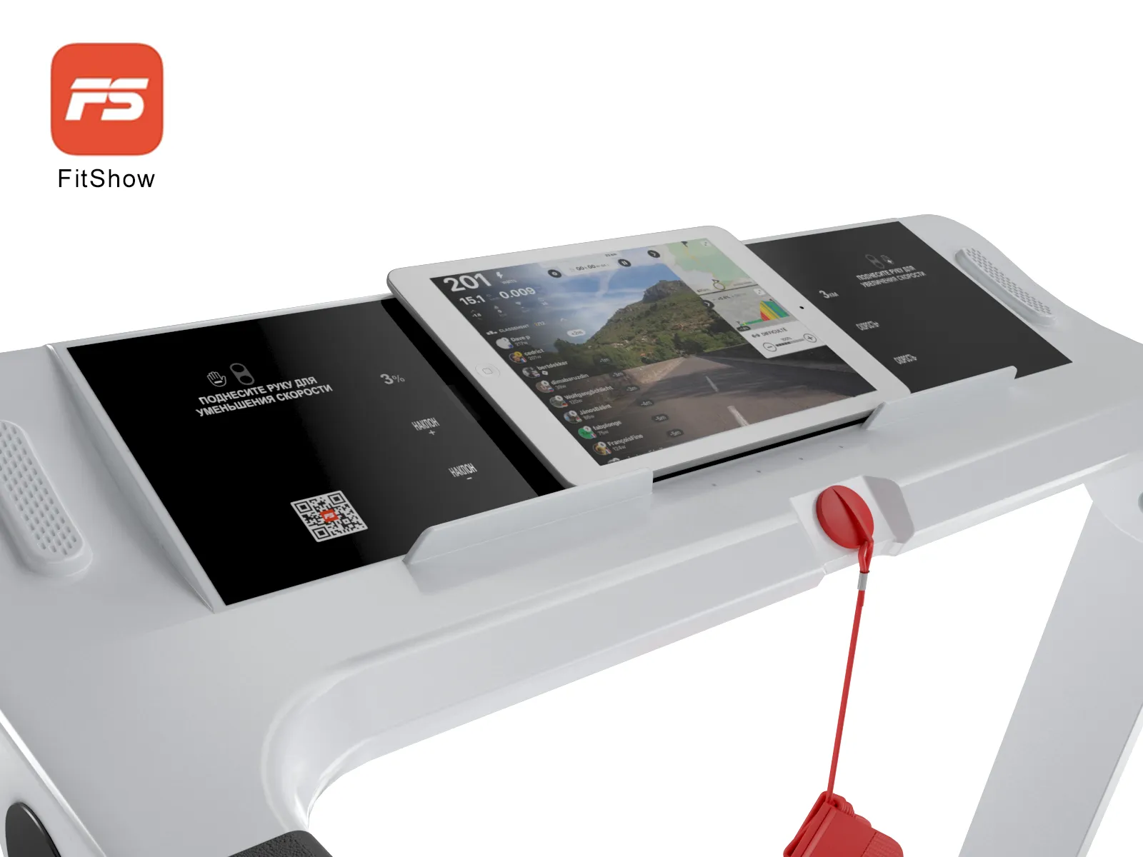 *Также, имеется возможность синхронизации беговой дорожки с мобильным устройством при помощи приложения FitShow/Kinomap/Zwfit, с возможностью управления беговой дорожкой и сохранения тренировок.