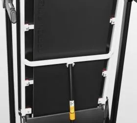 За удобство складывания отвечает двухфазная гидравлическая система Easy Drop™ - она существенно облегчает складывание дорожки, а при раскладывании обеспечивает медленное опускание полотна в последней фазе, гарантируя легкость и безопасность. Перемещение тренажера происходит за счет 2-ух транспортировочных роликов.