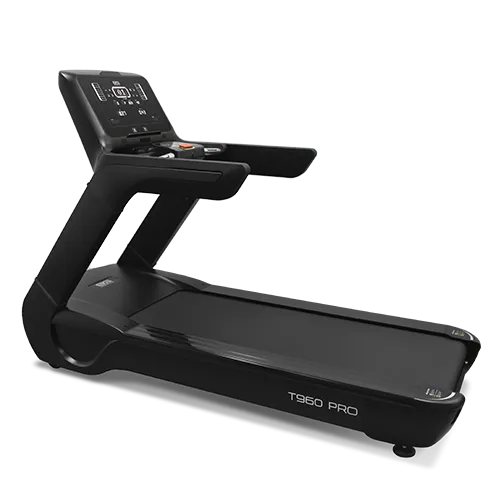 BRONZE GYM T960 PRO - профессиональная беговая дорожка для использования в тренажерных залах с любой проходимостью в режиме 24/7. Надежный двигатель мощностью 4.5. л.с. переменного тока (7.2 л.с. в режиме пиковой мощности) от японской Fuji Electric разгоняет полотно до 22 км./ч. Размеры беговой зоны составляют 155 см. в длину и 60 см. в ширину. Ортопедическое полотно Habasit NVT-232 толщиной 3.2 мм. рассчитано на серьезную коммерческую эксплуатацию. Усиленная парафинированная дека толщиной 25 мм. имеет специальные сертификаты технических и экологических директив EO/ROHS (ЕС) и 4 STAR GRADE F (Япония)). Мультиабсорбирующая динамическая система амортизации на основе изменяемых эластомеров antiSHOCKwave™ имеет 2 зоны жесткости. Передняя и центральная часть беговой зоны (то есть там, где идет основная ударная нагрузка на ноги) настроены на более мягкую амортизацию. Задняя часть, в зоне отрыва стопы, - на более жесткую.