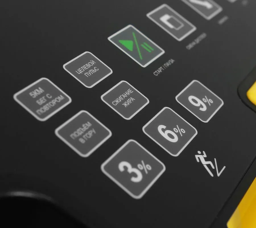 программный анимированный профиль, время, скорость, дистанция, калории, пульс, угол наклона, счет шагов, (русифицированные клавиши) |