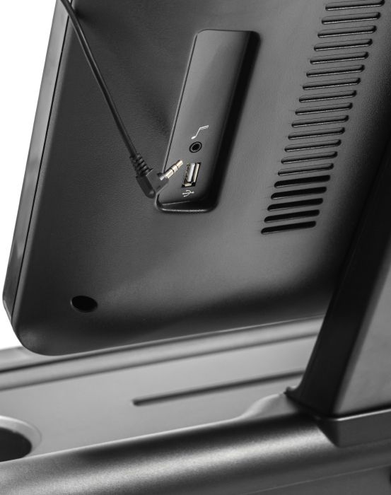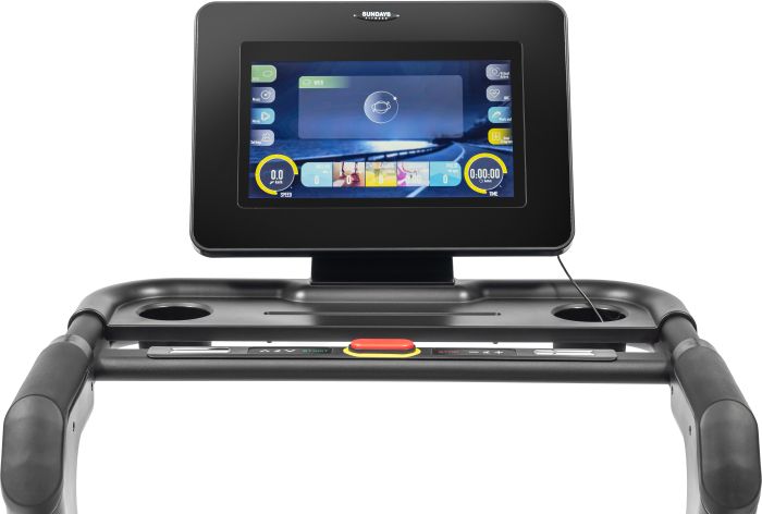 Современная панель управления состоит из большого TFT-дисплея, отображаются все параметры тренировки: время, дистанция, скорость, калории, пульс. Универсальный пакет встроенных программ состоит из 16 тренировок, включая интервальные, кардиоваскулярные, целевые программы и анализатор тела BodyFat. Панель управления оборудована автоконтролем смазки беговой поверхности, компьютер будет напоминать о необходимости провести ТО, это значительно увеличит срок службы оборудования и качество тренировок. В панель встроены музыкальные колонки достаточной мощности для воспроизведения хорошего звука, можно подключать плеер или проигрыватель MP3.