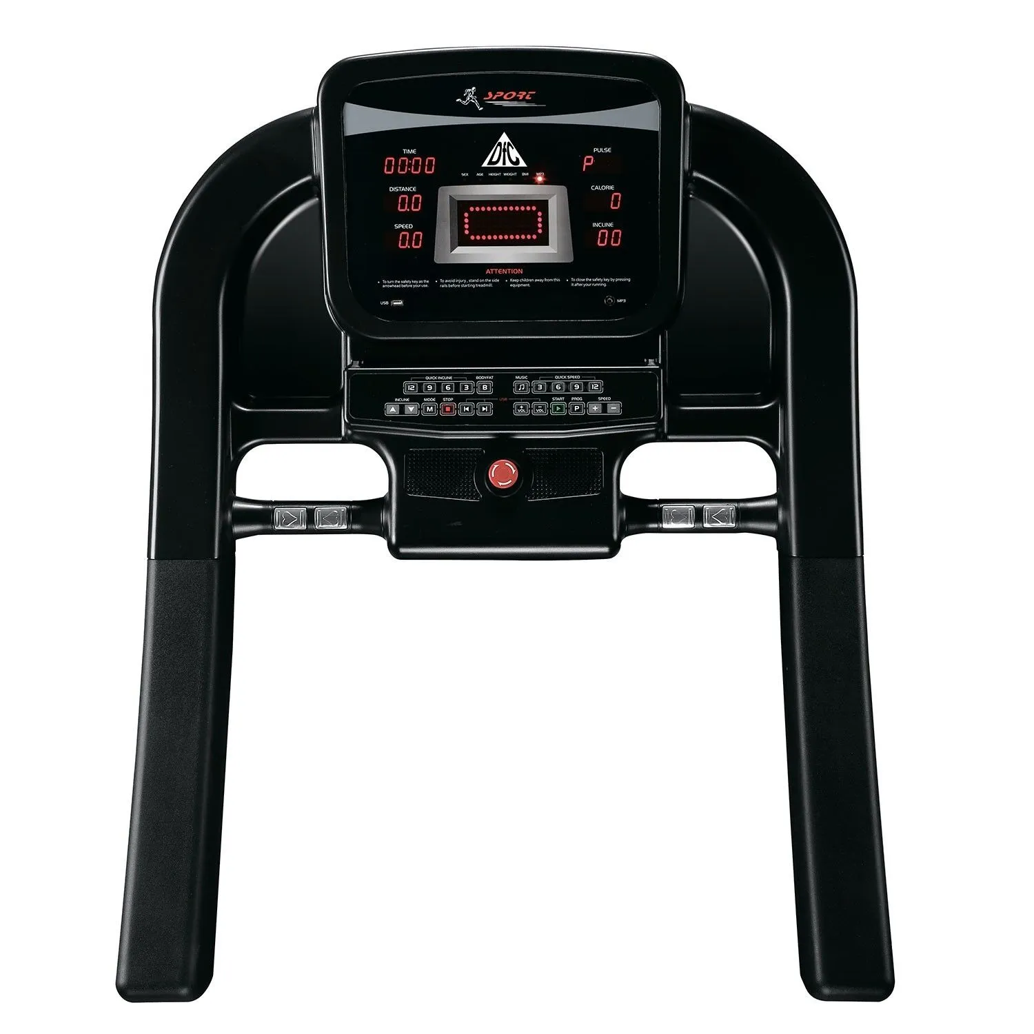 время, расстояние, скорость, калории, пульс, жироанализатор, показатель угла наклона |
