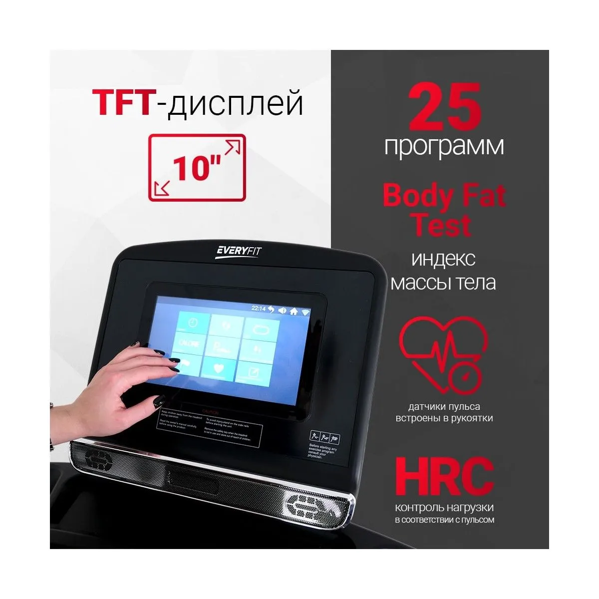 Электрическая беговая дорожка Everyfit 75005LT — это стильный и надежный домашний кардиотренажер, который поможет прийти в форму и укрепить сердечно-сосудистую и дыхательную системы.