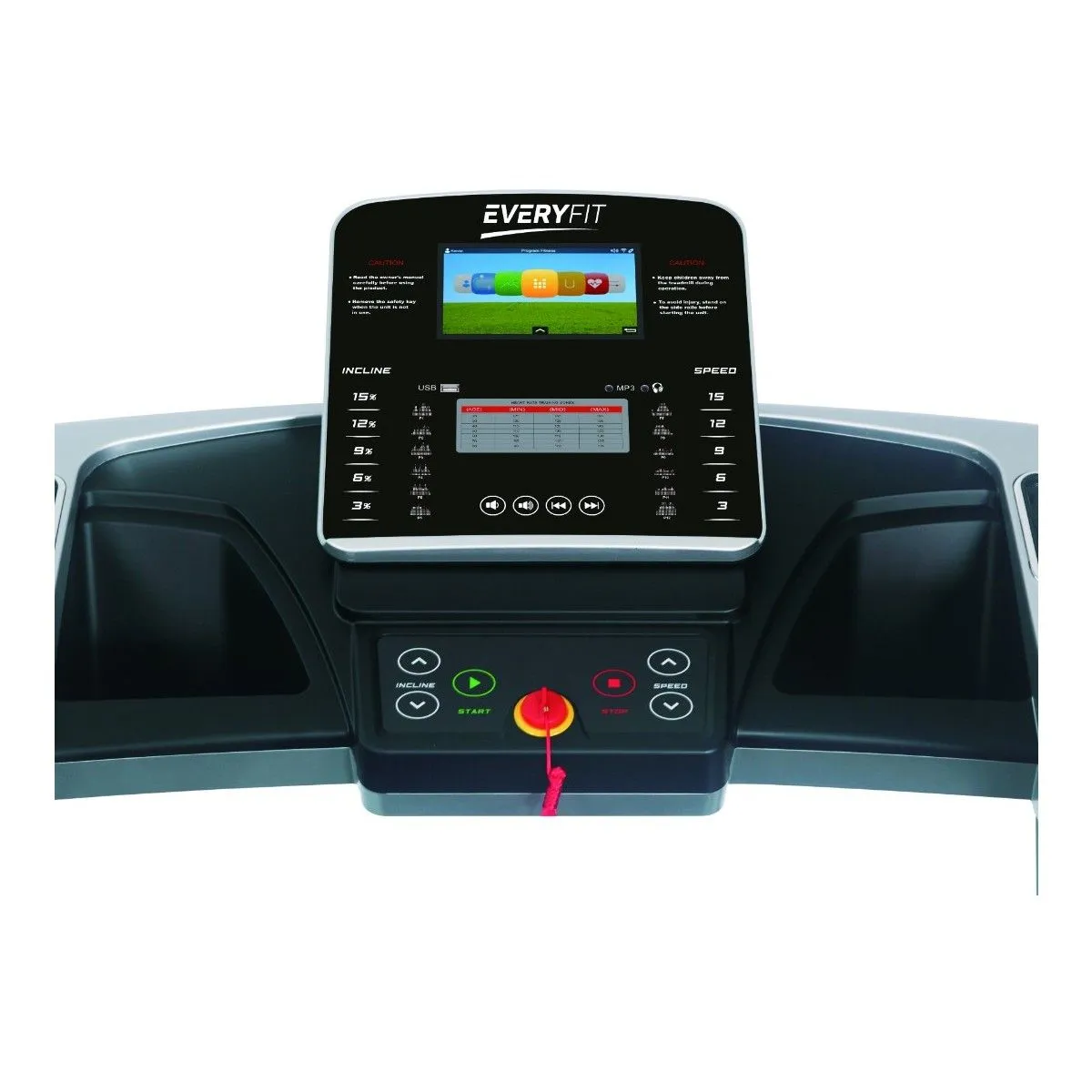 Для мониторинга состояния сердца, в поручни дорожки встроены датчики пульса, а также кнопки быстрого изменения скорости и угла наклона.