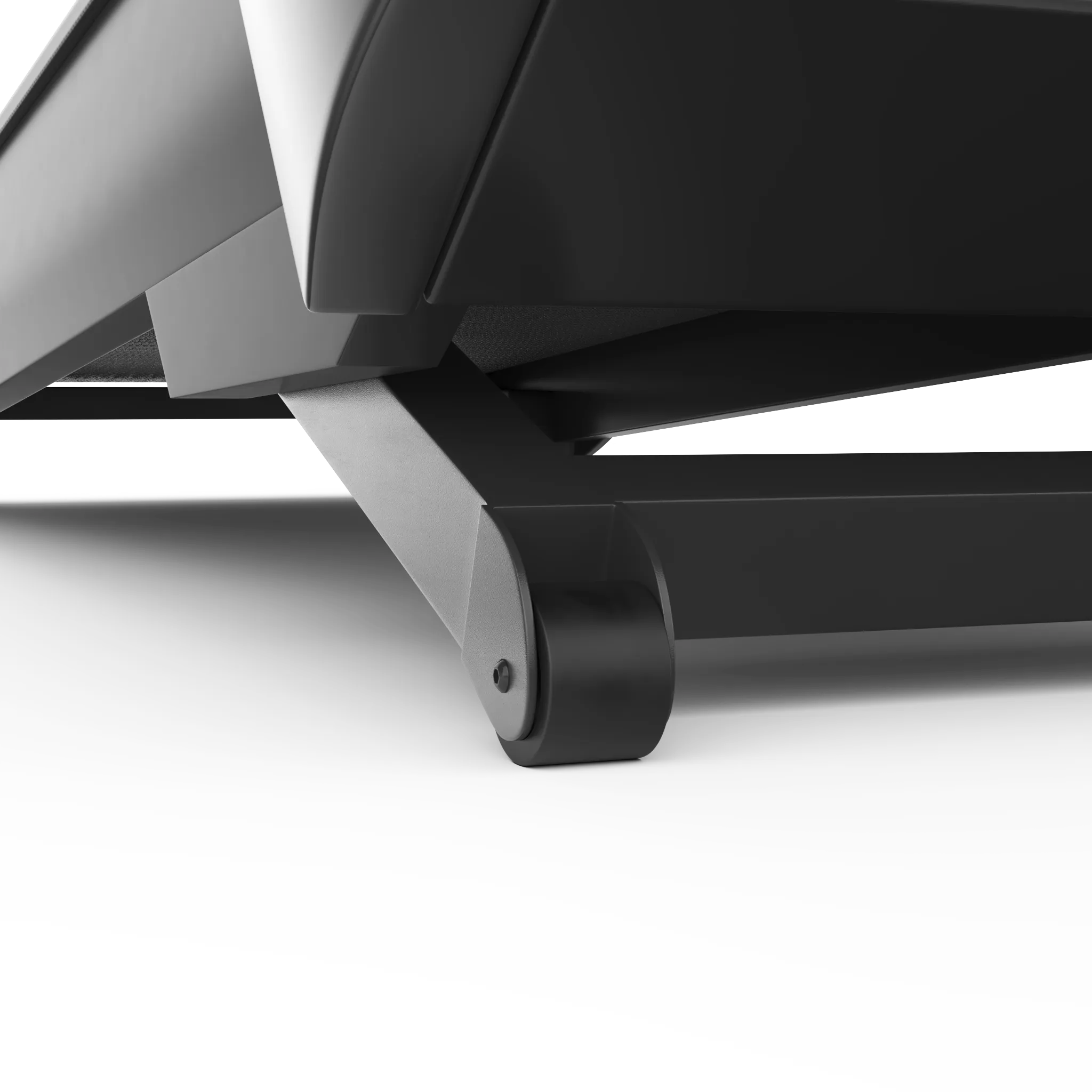 - Широкое беговое полотно. Одним из ключевых преимуществ профессиональной беговой дорожки является ее прочность и надежность. Она способна выдерживать интенсивные тренировки и длительные нагрузки без потери работоспособности. Широкое беговое полотно 158х58 см и толщиной 3 мм позволит заниматься с комфортом. Антискользящее полотно и передовая система амортизации поглощает удары и снижает нагрузку на суставы и мышцы, предотвращая травмы и обеспечивая комфортные и безопасные тренировки.