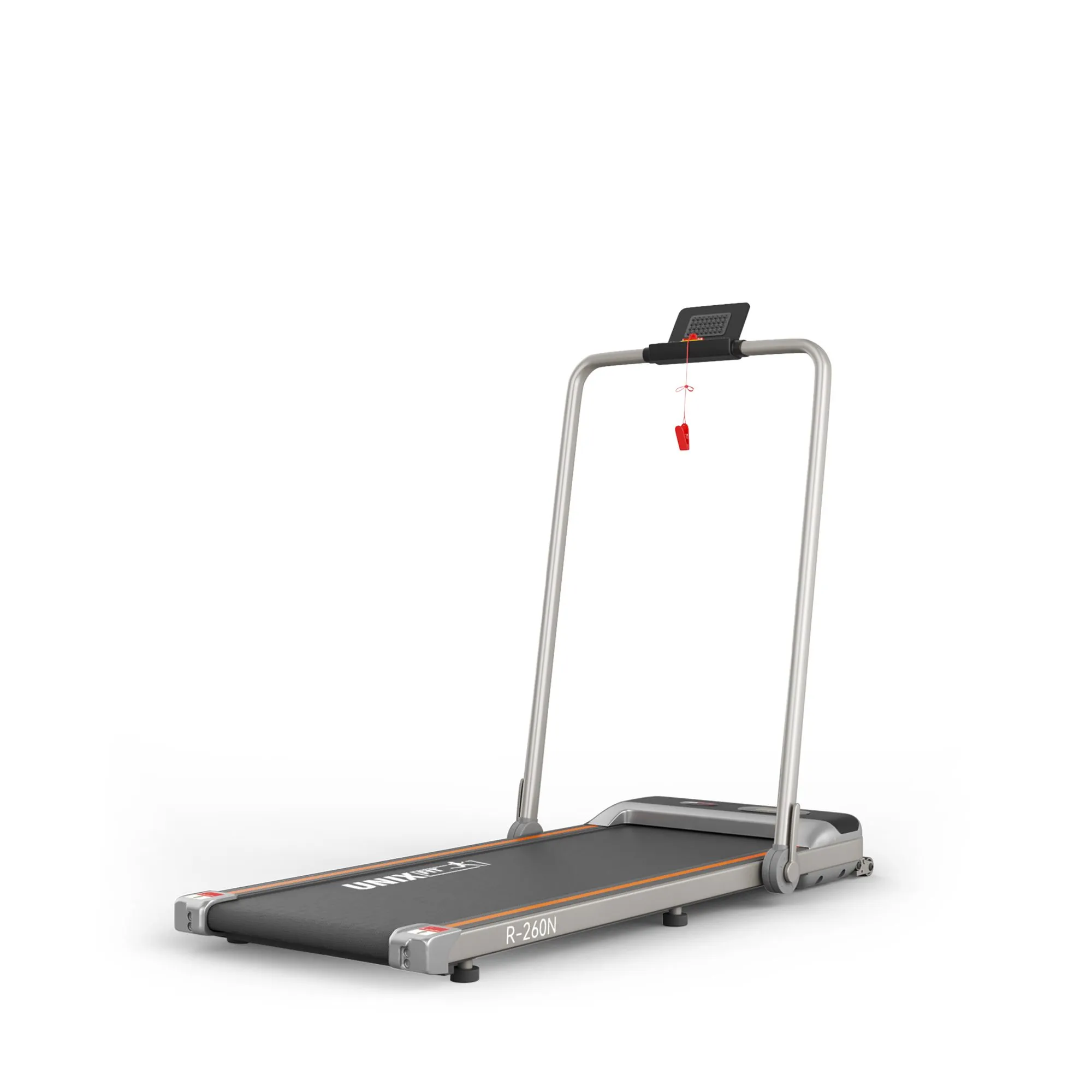 Важной особенностью ультратонкой беговой дорожки R-260N являются ее компактные размеры, которые в рабочем состоянии составляют 127,5 х 60 х 106 см. Беговая дорожка R-260N займёт мало места в квартире и отлично впишется в любой дизайн, ведь ее габариты в сложенном виде составляют 140 см х 63 см х 11,5 см, ее можно убрать под диван или кровать.