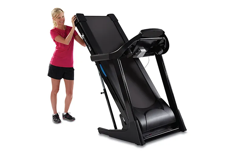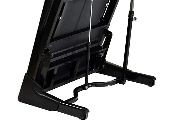 Когда дорожка не используется, Вы можете сложить её с помощью складной конструкции подъема рамы. Функция безопасного складывания медленно опускает раму, обеспечивая безопасность.