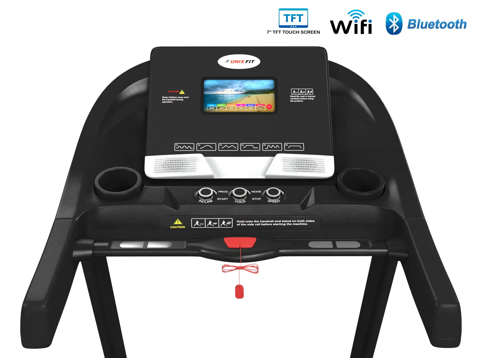 Беспроводной нагрудный кардиодатчик UNIXFIT (в комплекте), сенсорные датчики на поручнях |