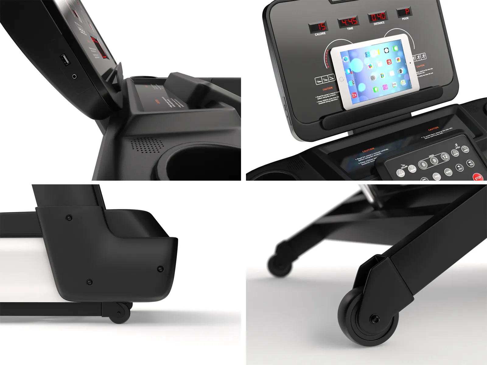 время, скорость, дистанция, угол наклона, калории, пульс |