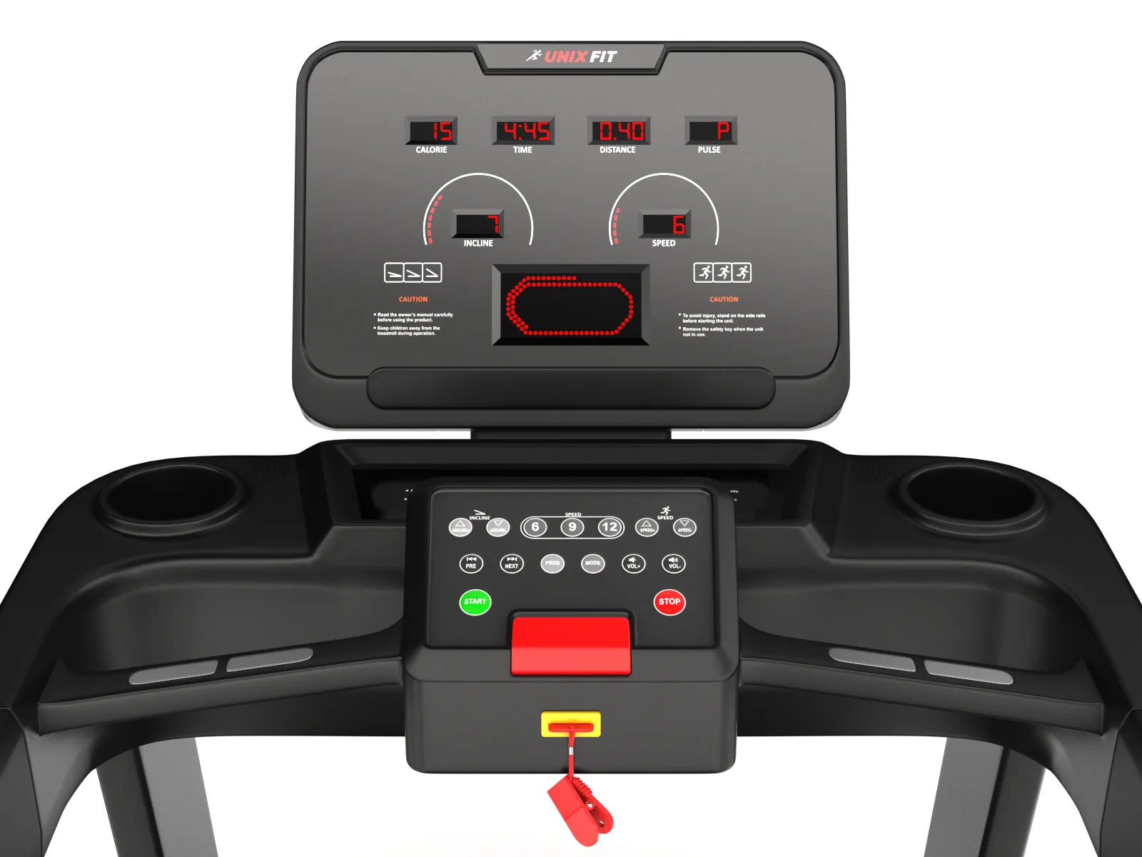 беспроводной нагрудный кардиодатчик UNIXFIT™ (в комплекте), сенсорные датчики на поручнях |