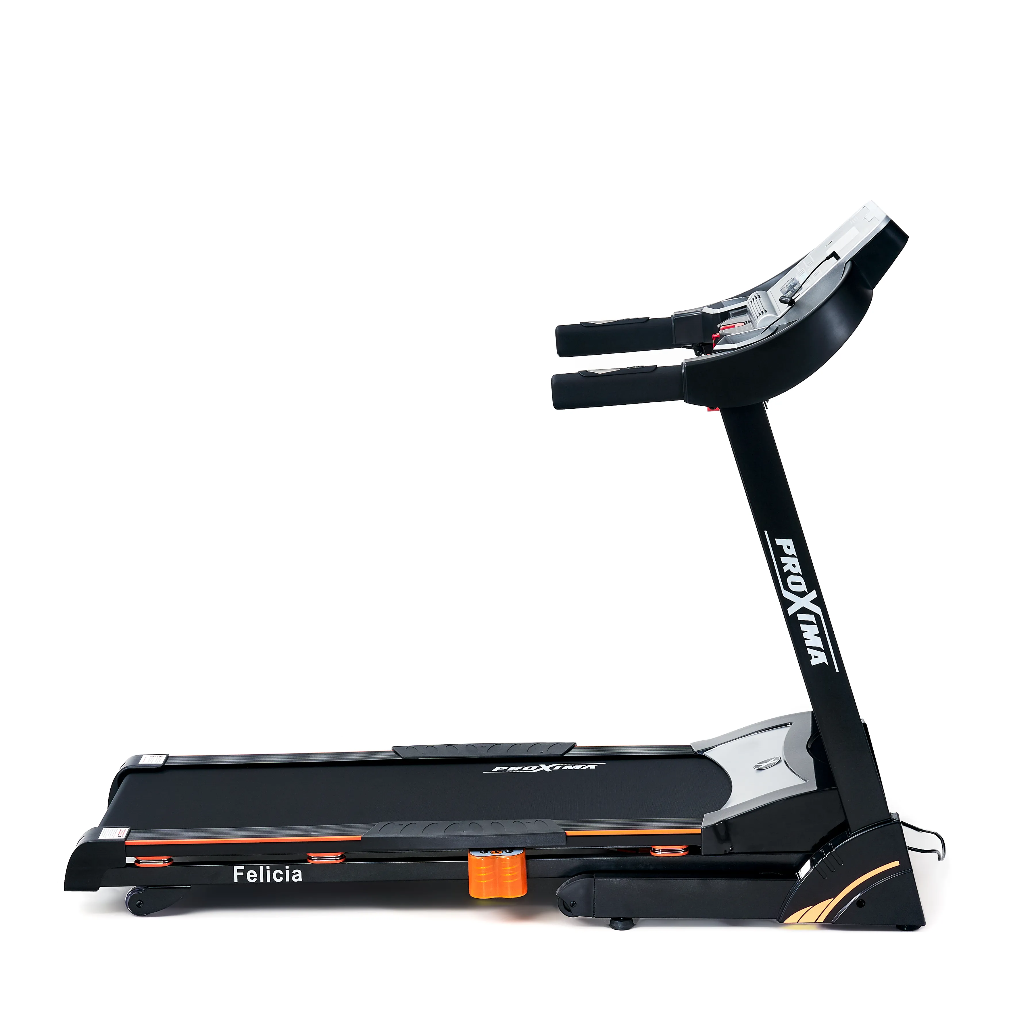 Электрическая беговая дорожка Proxima Felicia – это идеальное сочетание всего необходимого функционала для эффективных кардио-тренировок в домашних условиях. Беговое полотно оптимального размера, мощный двигатель, хорошая амортизация и это далеко не весь список преимуществ этой дорожки.