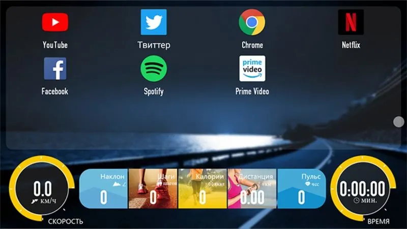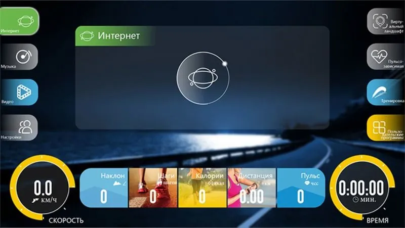 Высокотехнологичная консоль с большим цветнымTFT-дисплеем 10.1”. Все параметры, схемы и графики тренировки отображаются в удобном формате, для восприятия «в движении». Программный пакет включает виртуальный ландшафт и режимы соревнования, в общей сложности более 40 программ: пульсозависимые, персональные, интервальные, на выносливость, BodyFat и пр. TFT консоль подключается к сети Internet, доступны к просмотру: YouTube, Spotify, Twitter, Facebook, поиск в браузере, оснащена USB reading port для воспроизведения видео и аудио файлов.