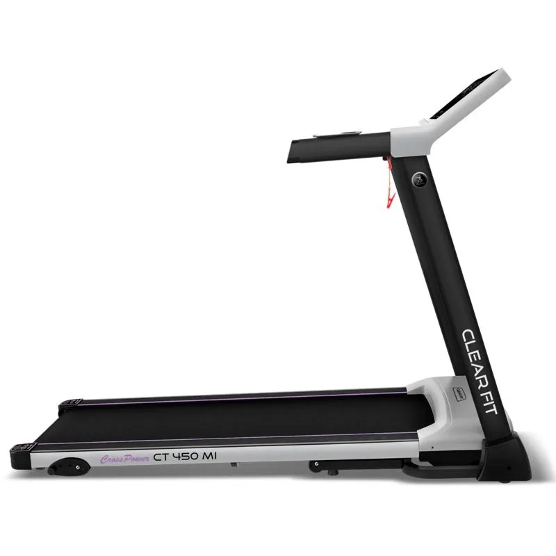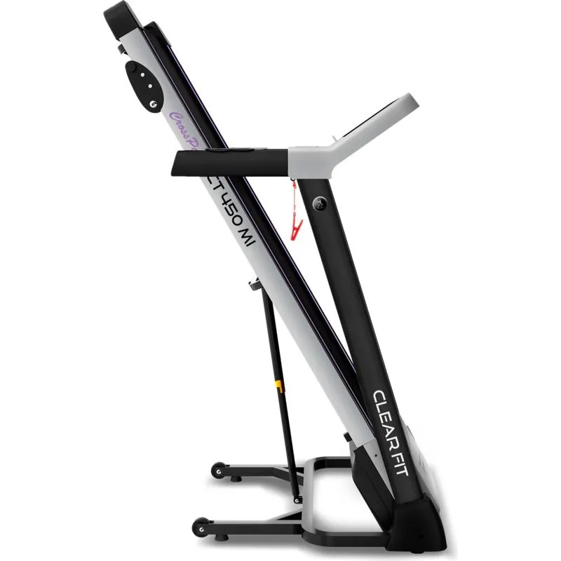 Оптимальная беговая дорожка для регулярных тренировок. Одно из преимуществ модели Clear Fit CT 450 MI – это просторное беговое полотно 450 х 1200 мм, размеры которого создают максимальный комфорт для любой комплекции и для тренировки на любой скорости в допустимом диапазоне модели 1–16 км/ч. Надежный, практически бесшумный двигатель беговых дорожек серии CrossPower обеспечивает плавное изменение и стабильное движение на всех оборотах. Прочная дека и усиленная конструкция рассчитаны для пользователей до 130 кг. Двойная система амортизации по всему периметру обеспечивает защиту от ударной нагрузки для суставов и позвоночника, подходит для всех возрастных групп пользователей. Газовый доводчик EasyDecline™ облегчает процесс складывания, обеспечивает плавное и мягкое опускание бегового полотна без усилий и шума, все для компактного хранения и простого перемещения тренажера.