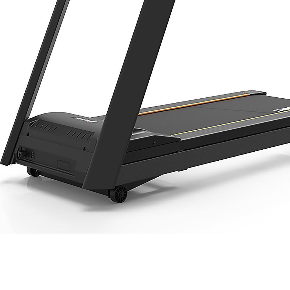 Для быстрой транспортировки в передней части беговой дорожки предусмотрены колесики. А компенсаторы неровностей пола, позволят разместить дорожку даже на несовершенных поверхностях.