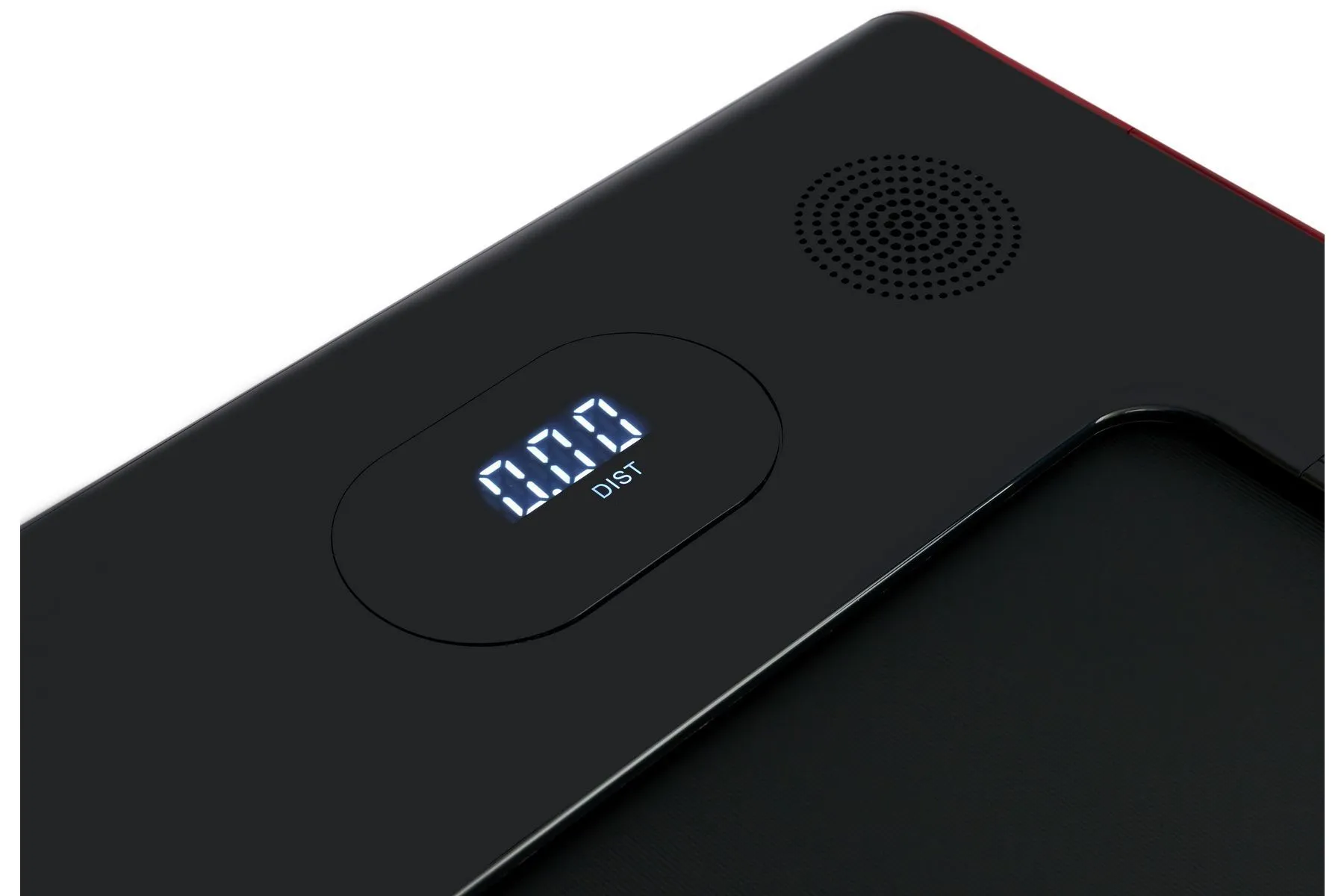По своим характеристикам Slimtech C10 ориентирована на массовый сегмент пользователей начального и продвинутого уровня. Максимальная скорость составляет 12 км/ч, этого достаточно для большинства пользователей. Размер бегового полотна 112 на 40 см подойдет для комфортной тренировки. Современная система амортизации на основе 4 среднеразмерных эластомеров edge-V™ настроена на средний уровень жесткости. Тренировочный компьютер представлен двумя LED дисплеями – один на консоли, второй на кожухе моторного отсека. К числу передовых решений относится датчик присутствия пользователя. Дорожка остановится и выключится автоматически если тренирующегося нет на беговом полотне. Это опция используется для корректного отображения данных подключаемых приложений, где проводятся онлайн соревнования. В дорожку установлены колонки мощностью 3 Ватта, подключение мобильного устройства происходит по Bluetooth соединению.