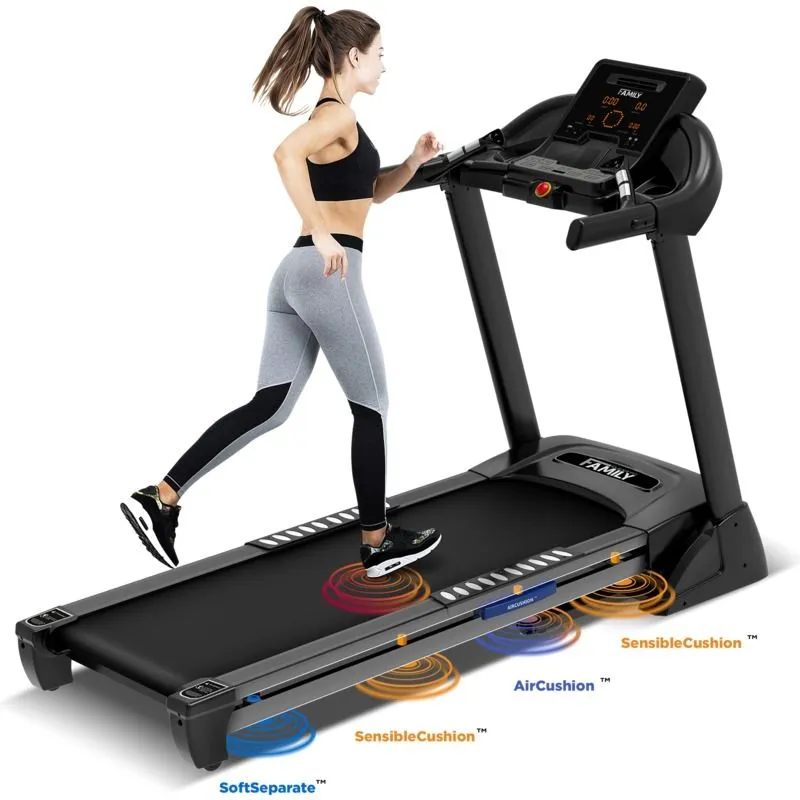 Рестайлинговая версия топовой модели Family TM 510 HRC – современный дизайн и технологии, улучшенные параметры, мощная рама и двигатель 3.5 л.с. Основные отличия и достоинства модели: большой размер бегового полотна 510 х 1400 мм, мощный двигатель 3.5 л.с. – низкий уровень шума, длительная и плавная работа мотора на всем диапазоне скорости 1–20 км/ч. Усиленная конструкция рамы, толстая дека 18 мм, 5-ти слойное полотно Diamond™ и широкий диаметр валов 50/46 мм, гарантируют комфортные и безопасные тренировки пользователям до 150 кг. Электрическое изменение угла наклона – 15 уровней позволяет увеличивать эффективность тренировок и глубже прорабатывать большую группу мышц. Инновационная система адаптивной амортизации состоит из 4-х типов эластомеров: классические 4 эластомера SensibleCushion™ по периметру передней части, 2 удлиненных адаптивных эластомера AirCushion™ и 2 усиленных PillarCushion™ в активной зоне, SoftSeparate™ на корме деки – совместно обеспечивают естественное и безопасное движение. Данная система амортизации снижает нагрузку на суставы по всей площади беговой деки, допускает использование тренажера без ограничения возраста, при любом режиме скорости и нагрузки.