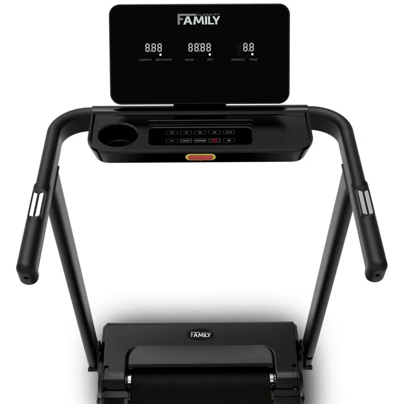 Удобная и надежная модель Family TM 302M это электрическая беговая дорожка для домашних тренировок, оснащена механическим изменением угла наклона – 2 уровня. Надежный двигатель обеспечивает стабильный ход, поддерживает скорость от 0.8 до 12 км/ч. Беговое полотно шириной 400 х 1220 мм – оптимальные размеры для легкого бега или ходьбы в домашних условиях. Двойная система амортизации: SoftSeparate™ состоит из 6 эластомеров по периметру и 2 эластомера SensibleCushion™ в центральной зоне, обеспечивают амортизацию средней жёсткости, максимально безопасную и комфортную для суставов при ходьбе и легком беге. Качественная ламинированная дека 16 мм и прочная рама рассчитаны для пользователей весом до 110 кг. Надежность рамы обусловлена весом тренажера, значительно тяжелее аналогов. Механическое изменение угла наклона позволяет увеличивать эффективность тренировки и смещать акцент на задействованные группы мышц, вносит разнообразие. Компактность, удобство хранения и перемещения незаменимы при эксплуатации тренажера в домашних условиях.
