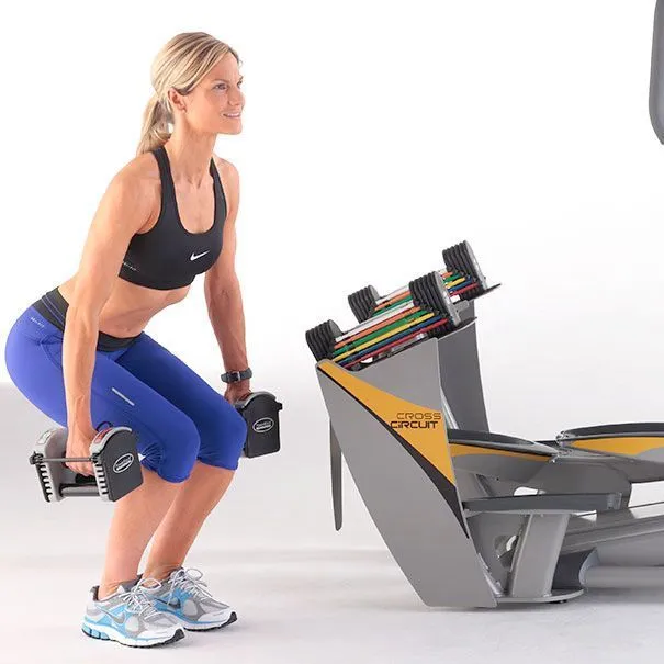 Octane Fitness предоставляет возможность по комбинации кардио и силовых тренировок. Для этого предусмотрена опция CROSS CiRCUIT. Используйте встроенные гантели, а программа сама рассчитает ритм, период актива и пауз.
