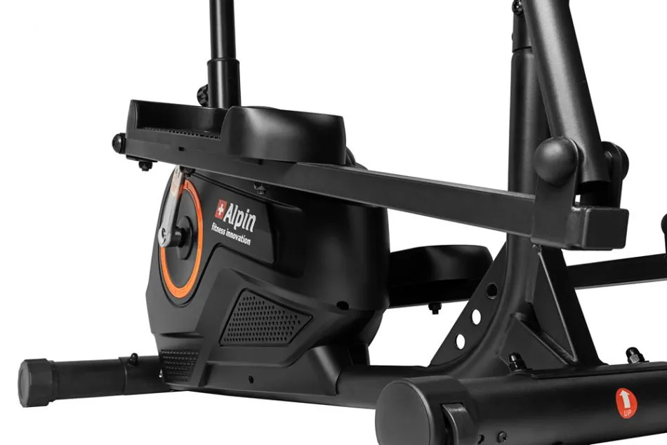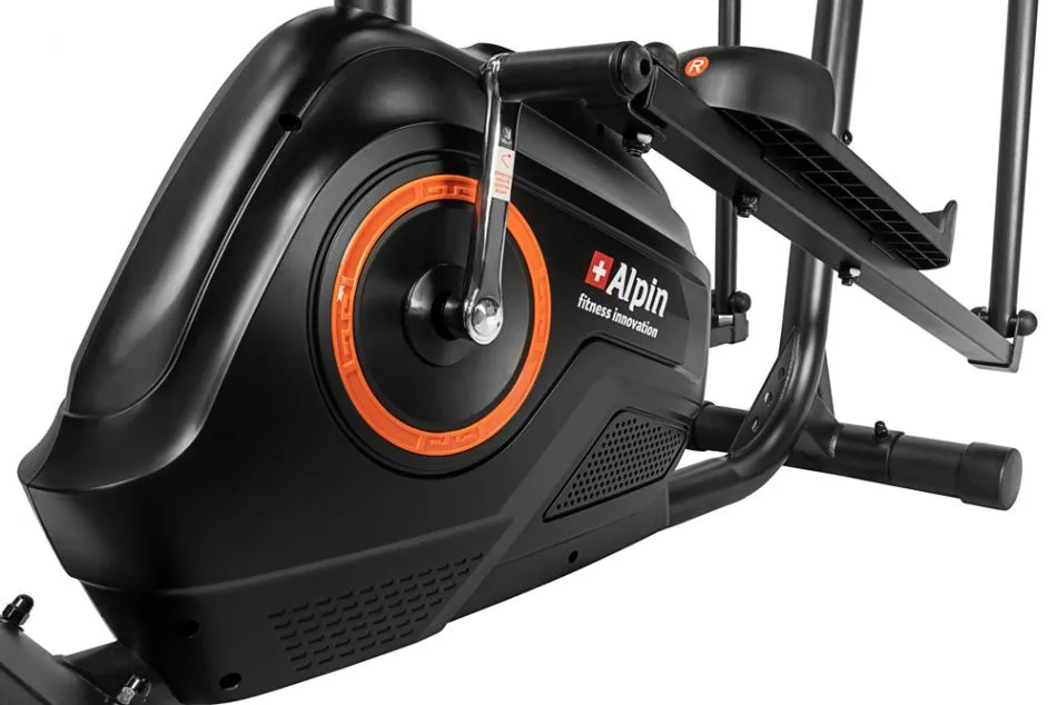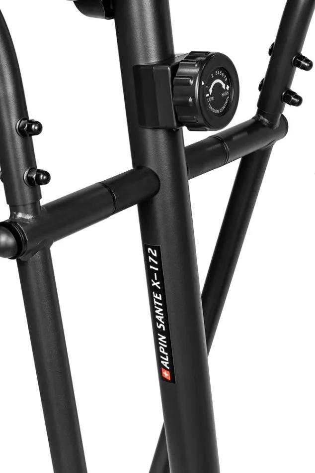 Alpin Sante X-172 с сиденьем - малогабаритный высокотехнологичный магнитный эллипсоид с задним приводом, вобравший в себя массу самых современных инноваций. Конструкция рамы построена на основе анатомических особенностей человека, которая предусматривает оптимальное положение рук, ног и торса по отношению к педалям и рукояткам. При этом система сбалансирована под пользователя ростом до 170 см. Расстояние между педалями (так называемый Q-Фактор) составляет всего 19 см - это одно из самых минимальных значений для эллипсоидов с задним приводом.